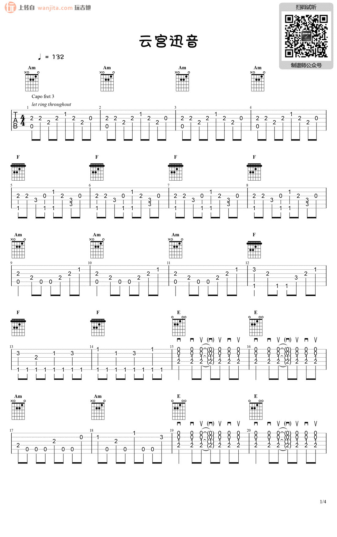 曲谱介绍: 许镜清《西游记序曲》吉他独奏谱,共有4张高清图谱。