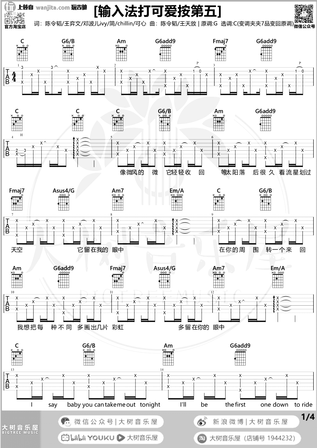 输入法打可爱按第五吉他谱 - 鞠婧祎/米卡/高卿尘 - C调吉他弹唱谱 - 原版