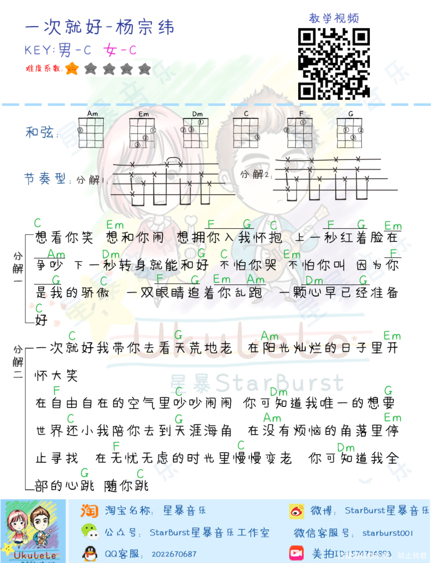 一次就好尤克里里谱 - 杨宗纬