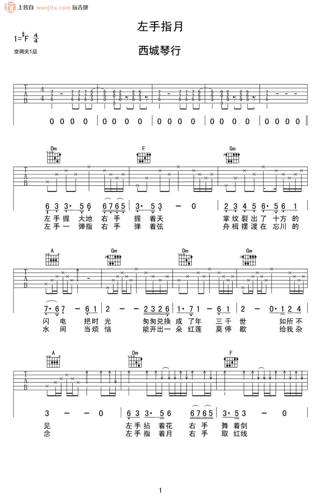 左手指月吉他谱 - 萨顶顶 - F调吉他弹唱谱 - 原版