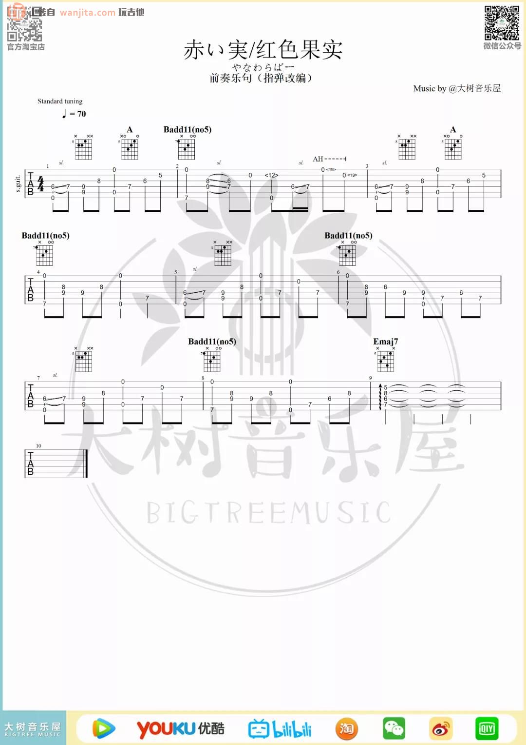曲谱介绍: 《赤い実》吉他指弹演示视频 《赤い実》吉他指弹演示视频