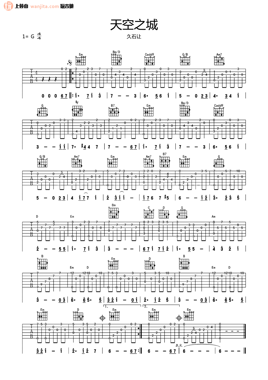 天空之城吉他谱 - 久石让 - G调吉他独奏谱