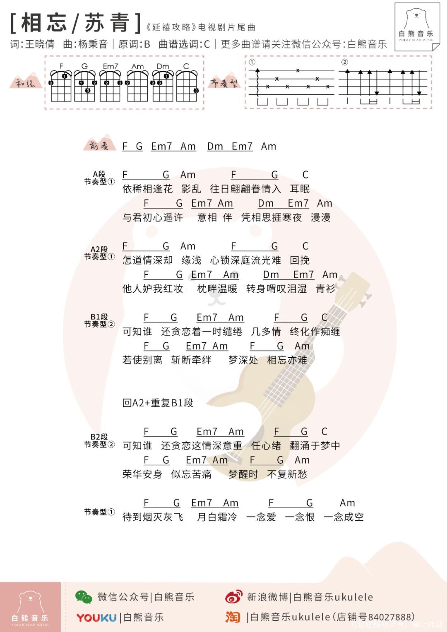 曲谱介绍: 「相忘」尤克里里弹唱谱