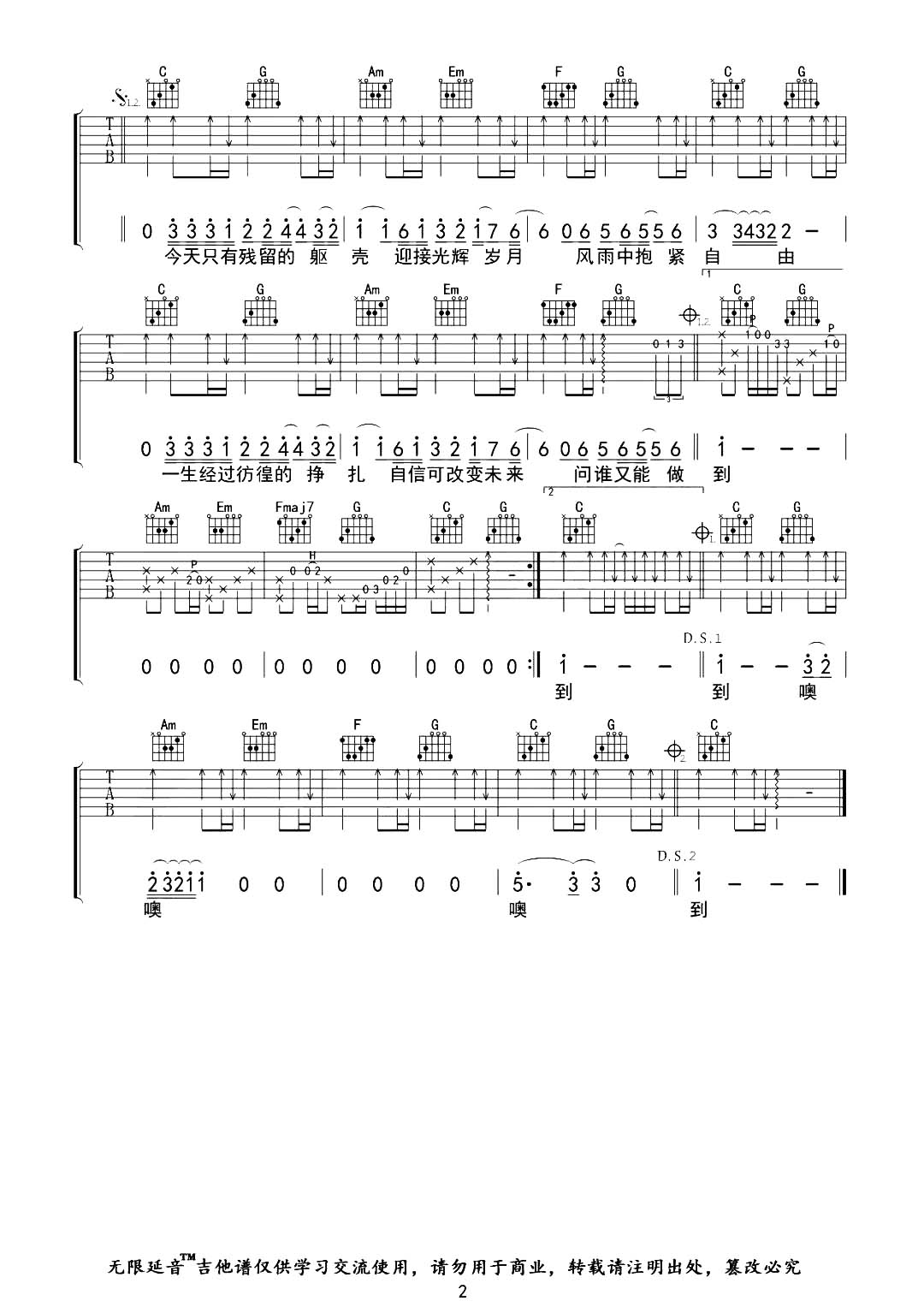 曲谱介绍: Beyond《光辉岁月》吉他弹唱谱,采用C调指法编配原版,共有2张高清图谱,免翻页排版设计。