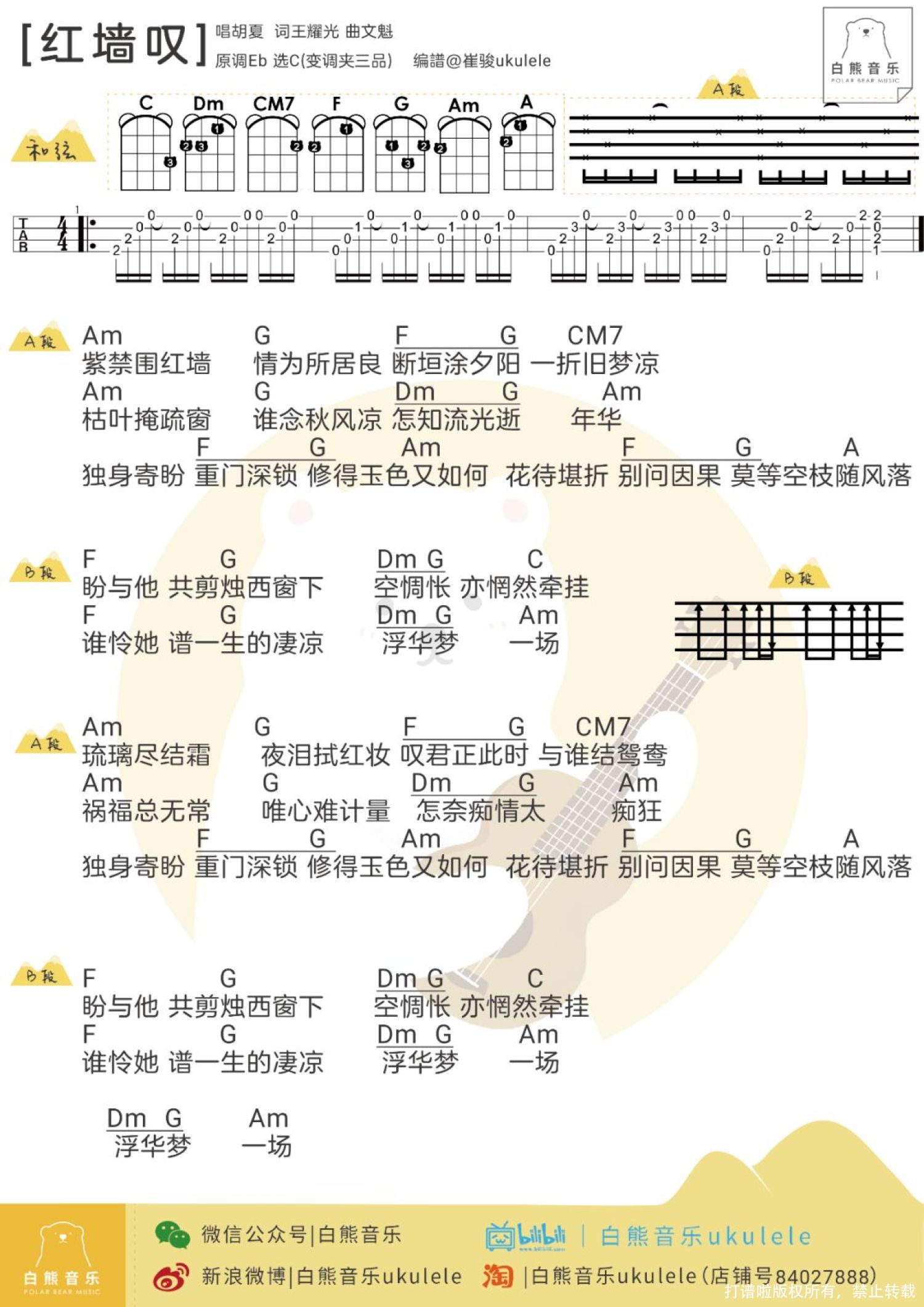 曲谱介绍: 「红墙叹」尤克里里弹唱谱