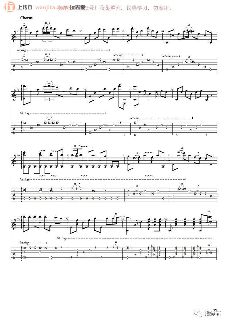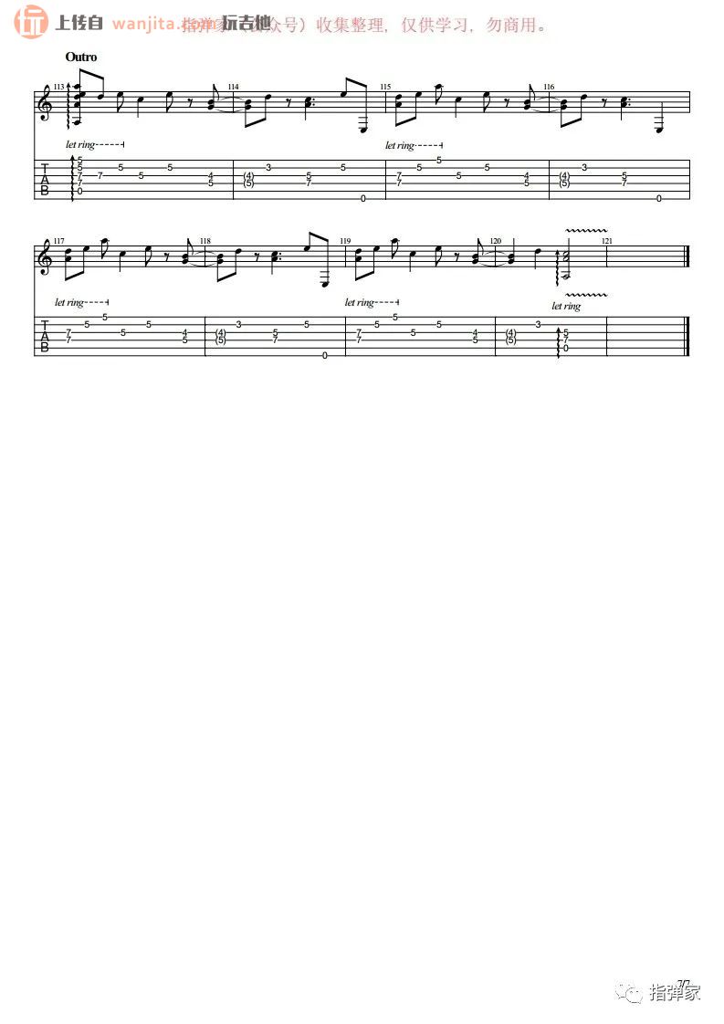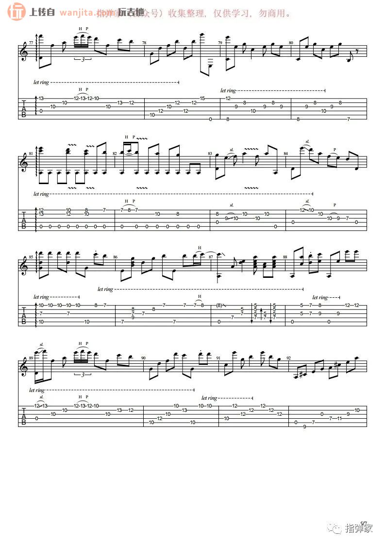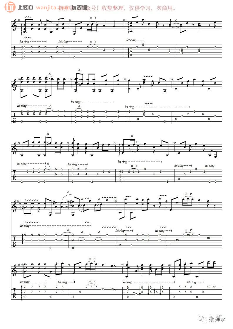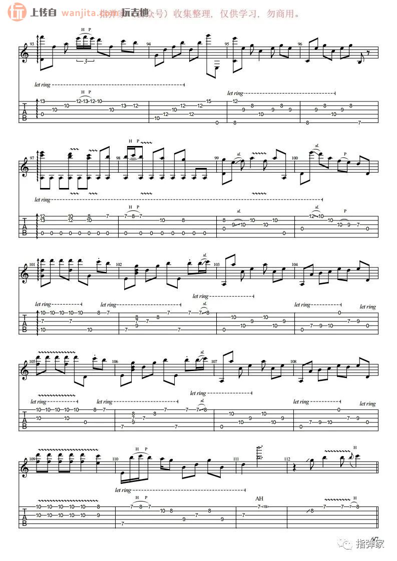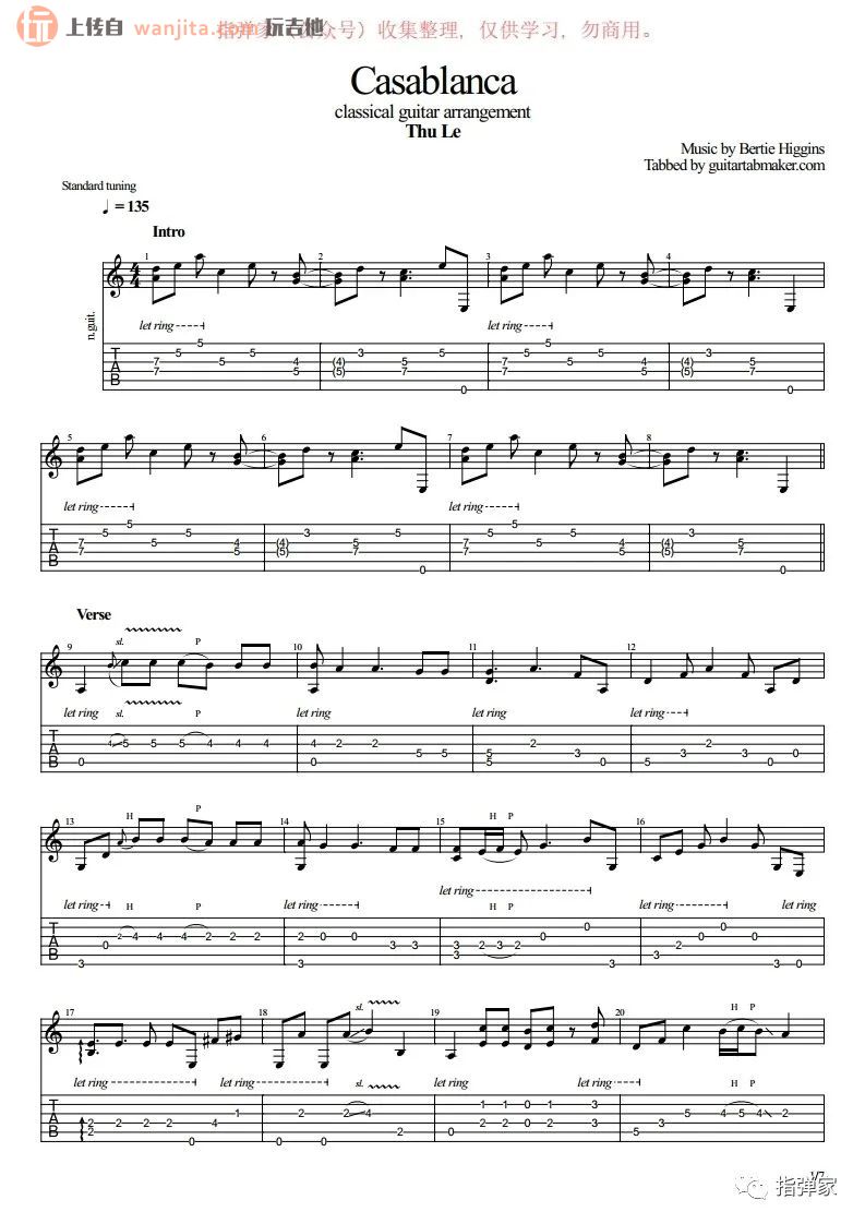 曲谱介绍: 《卡萨布兰卡》指弹谱,不使用变调夹。歌曲比较难以学习,不推荐新手学习这首歌曲,里面对右手的节奏把握有着极高的要求,用到了一系列的吉他技巧,比较难学的一张谱子。总共7张高清图片谱例,由指弹家制谱分享。