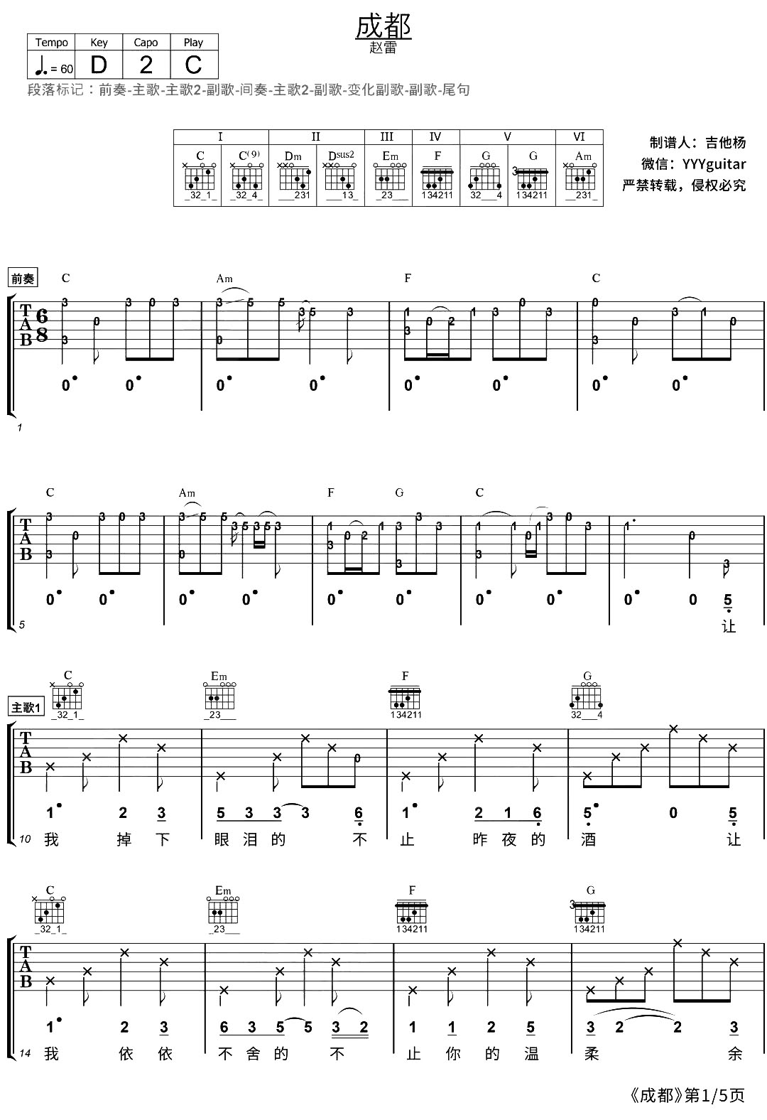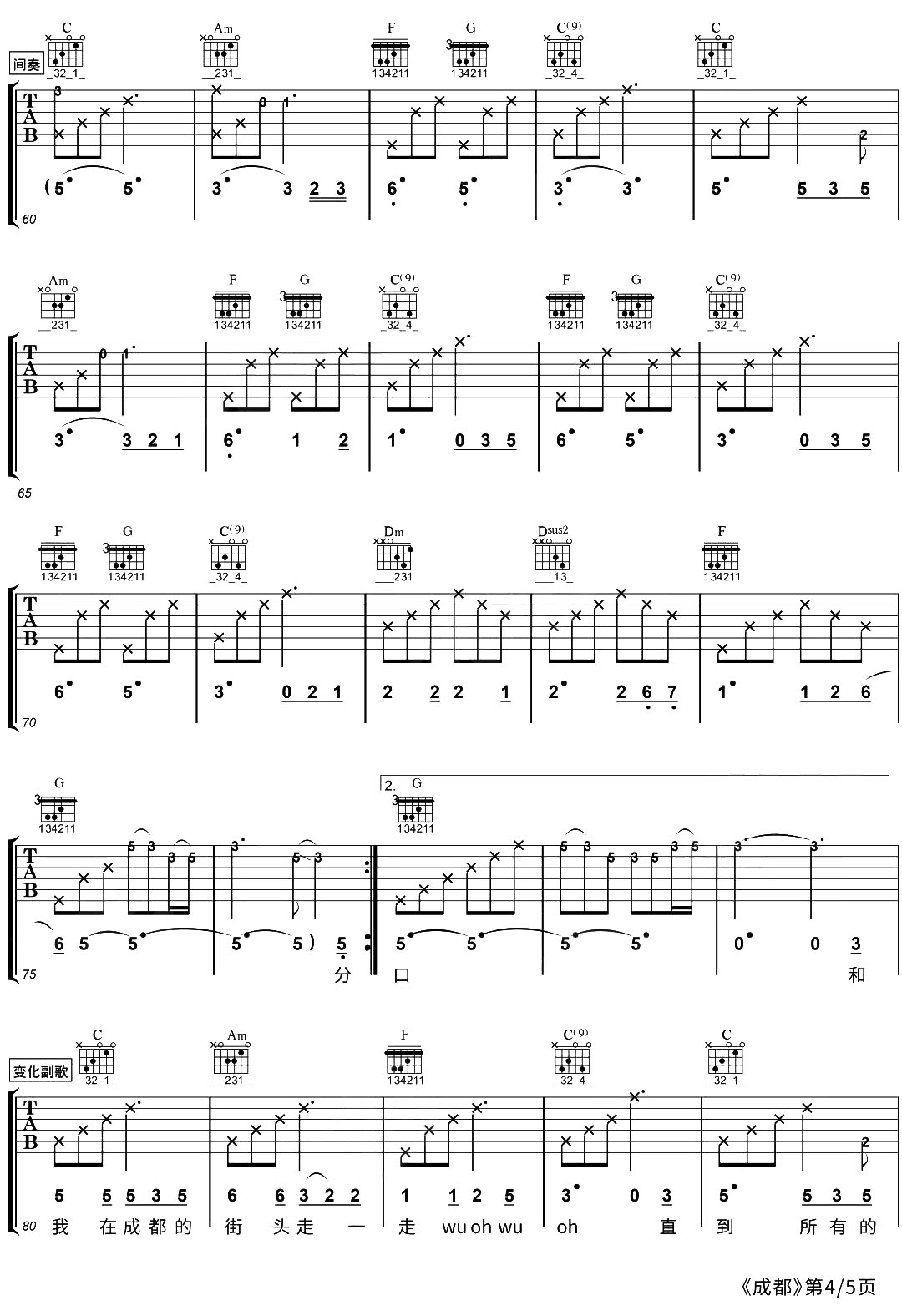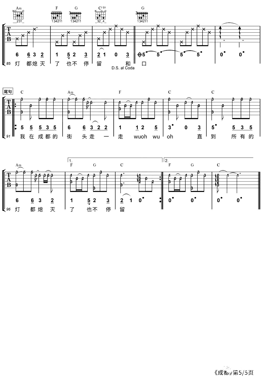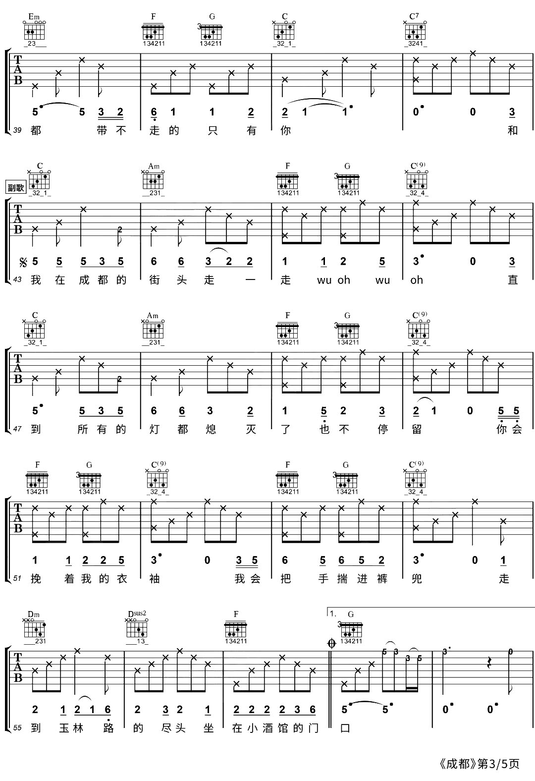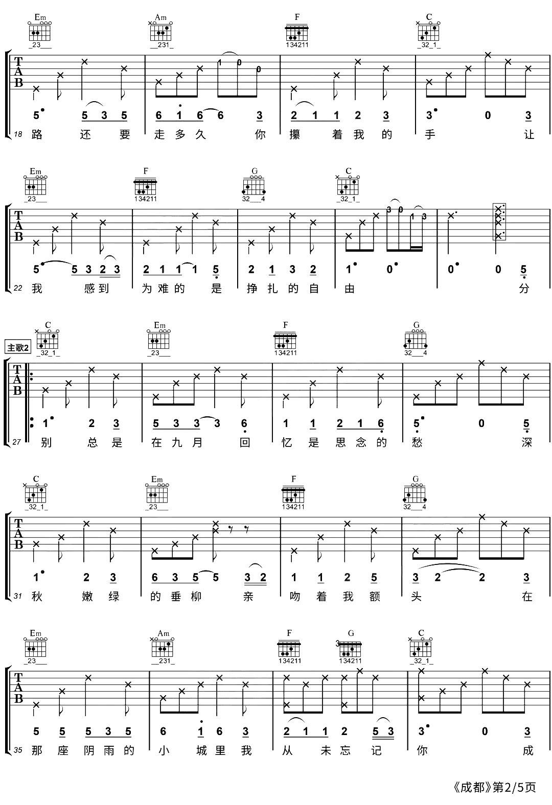 当前位置:琴谱网>吉他弹唱>成都