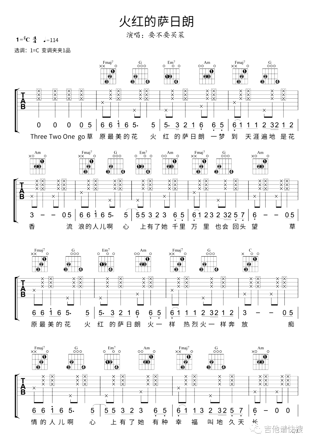火红的萨日朗吉他谱 - 要不要买菜 - C调吉他弹唱谱 - 原版