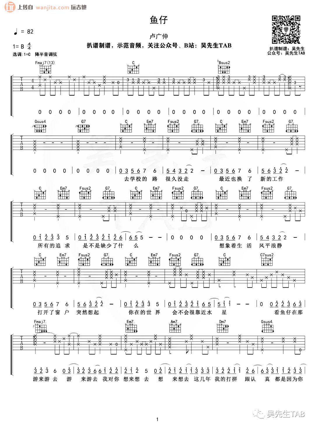 鱼仔吉他谱 - 卢广仲 - C调吉他弹唱谱 - 原版