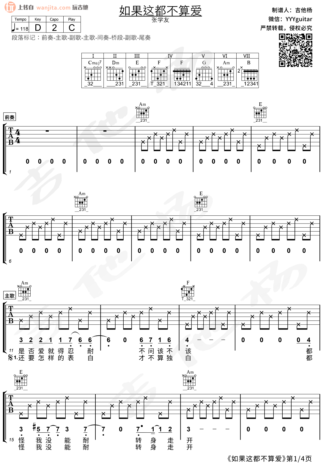 当前位置:琴谱网>吉他弹唱>如果这都不算爱