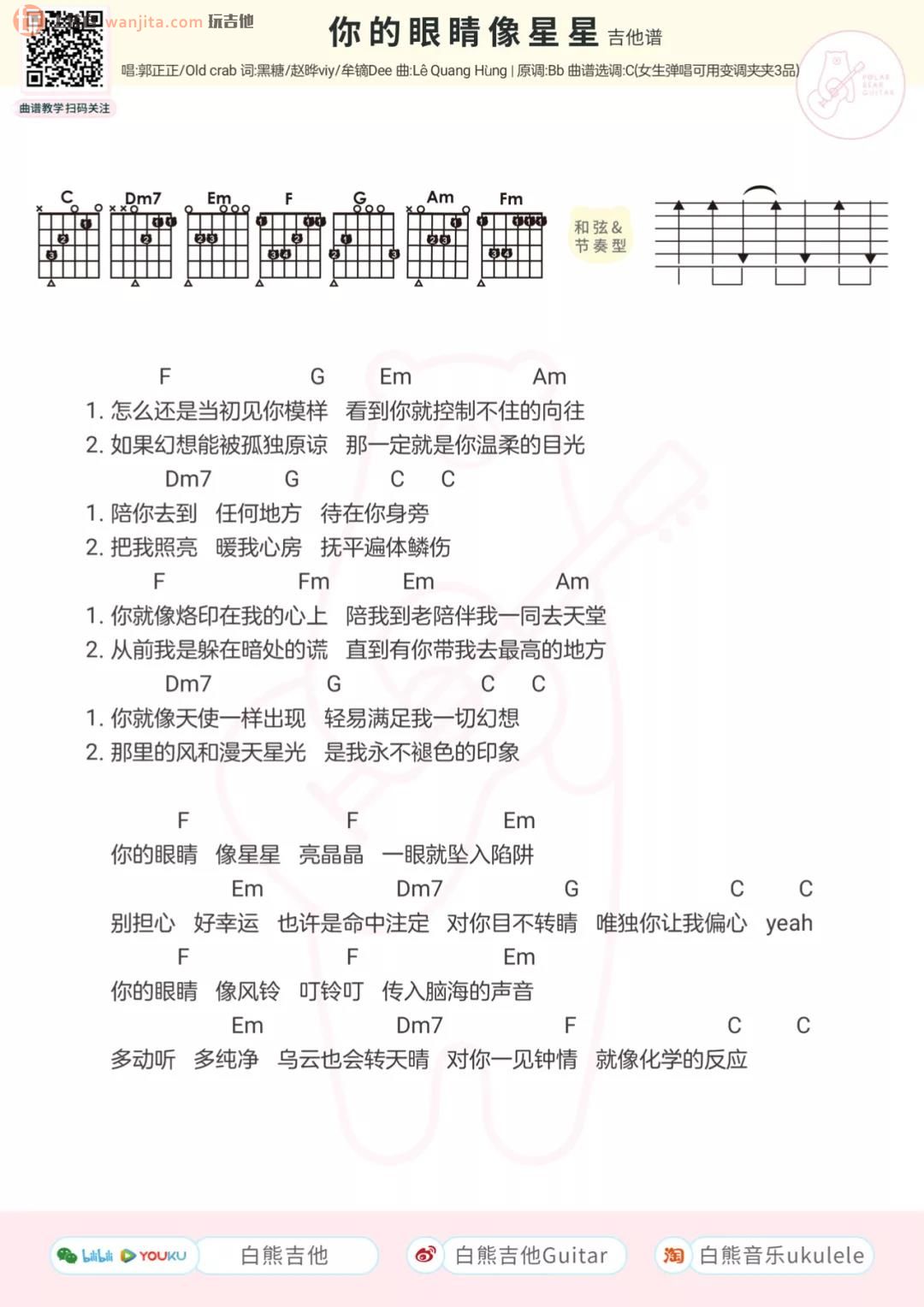 你的眼睛像星星吉他谱 - 郭正正&老圈C - C调吉他弹唱谱
