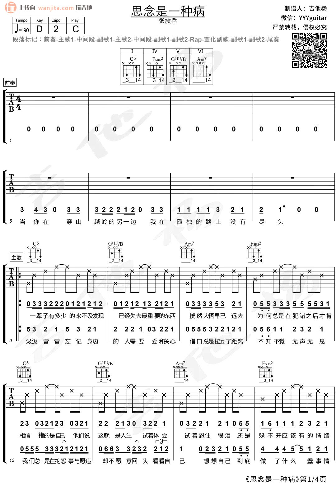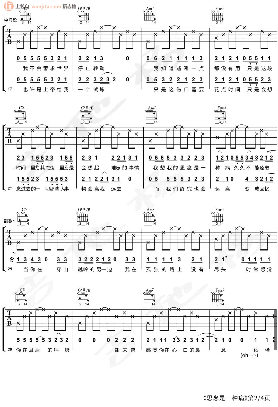 当前位置:琴谱网>吉他弹唱>思念是一种病