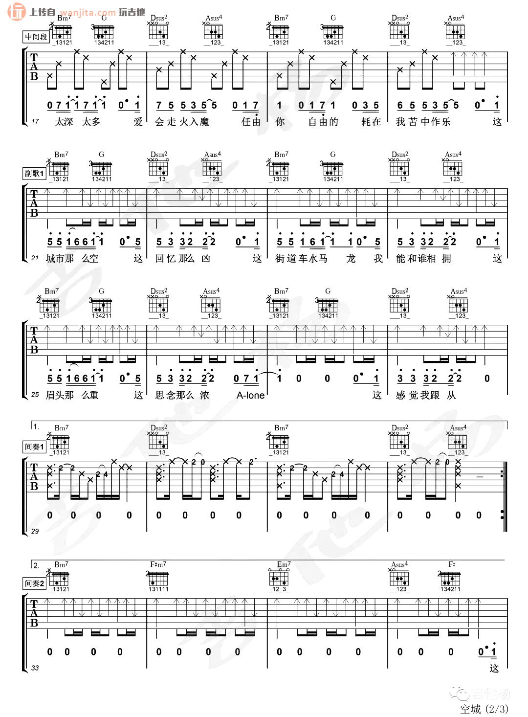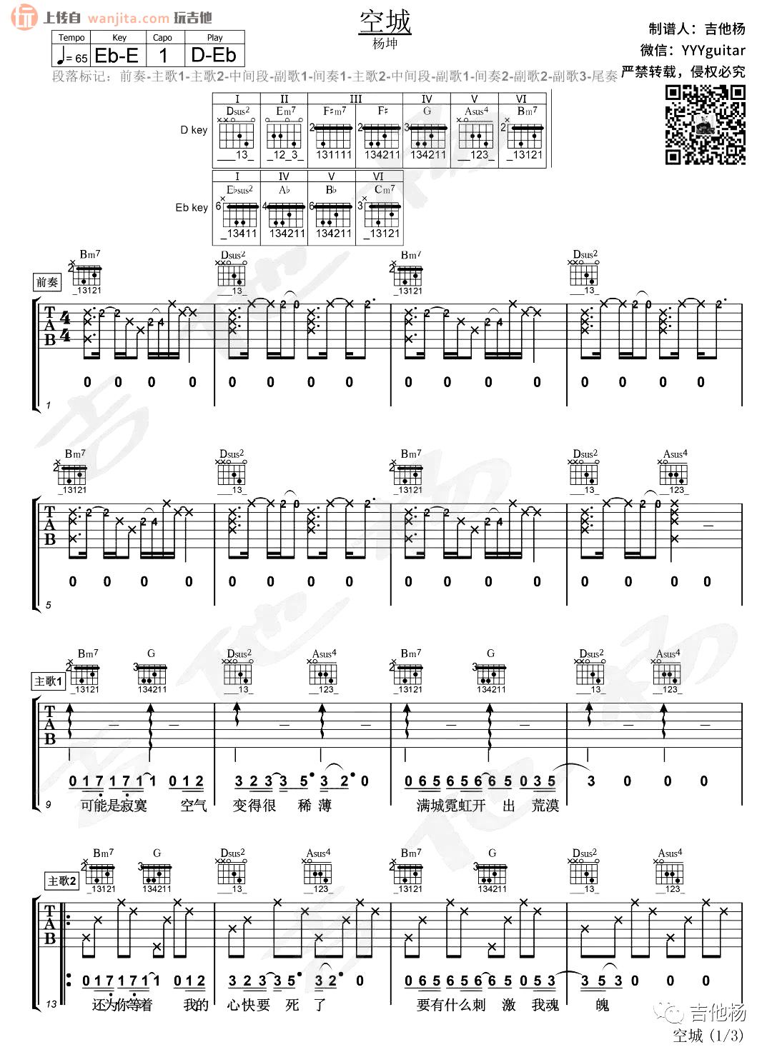 空城吉他谱 - 杨坤 - D调吉他弹唱谱 - 原版