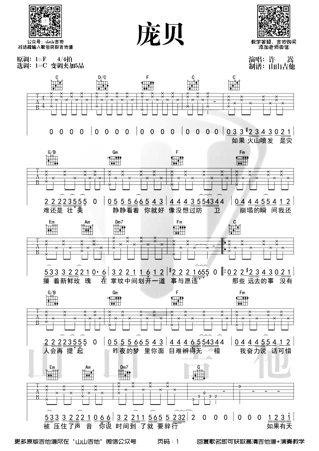 庞贝吉他谱 - 许嵩 - C调吉他弹唱谱