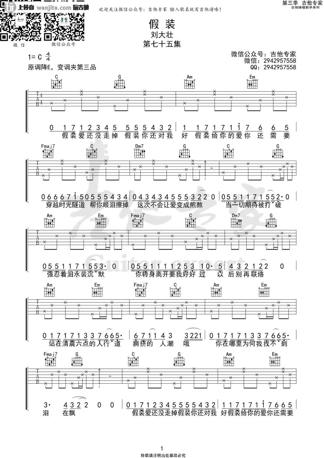 当前位置:琴谱网>吉他弹唱>假装