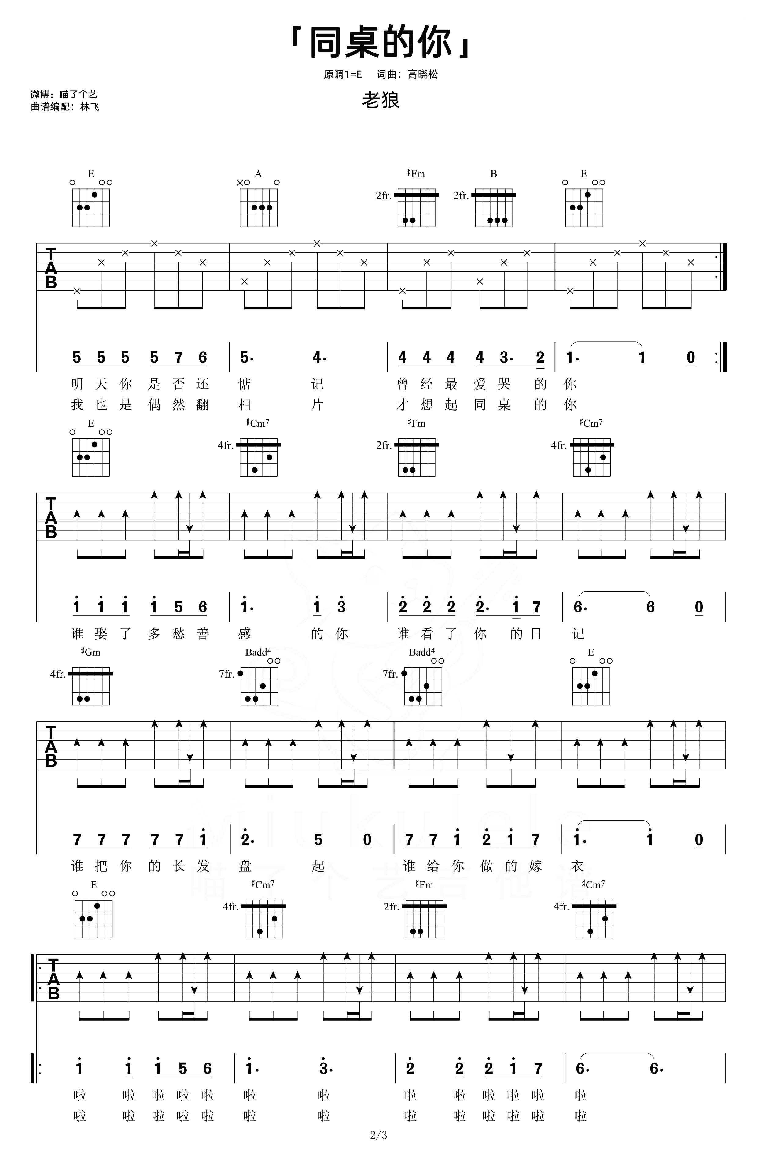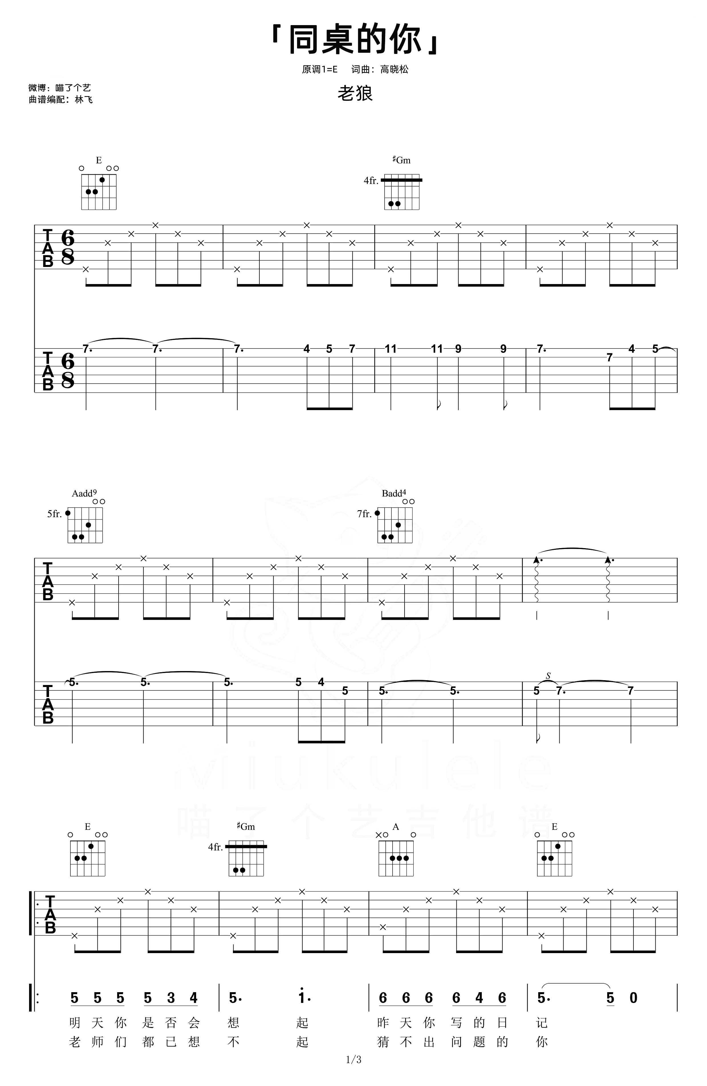 同桌的你吉他谱 - 老狼 - E调吉他弹唱谱