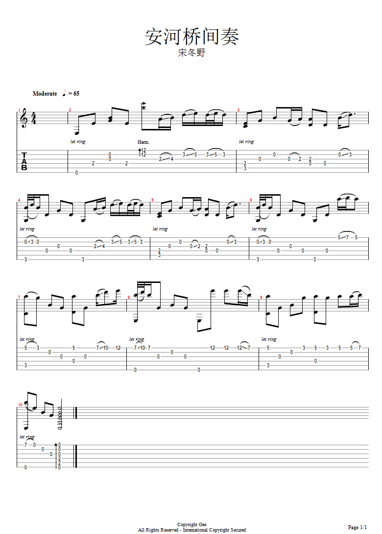 曲谱介绍: 安和桥间奏指弹吉他谱_宋冬野_《安和桥》独奏六线谱_高清图片谱: