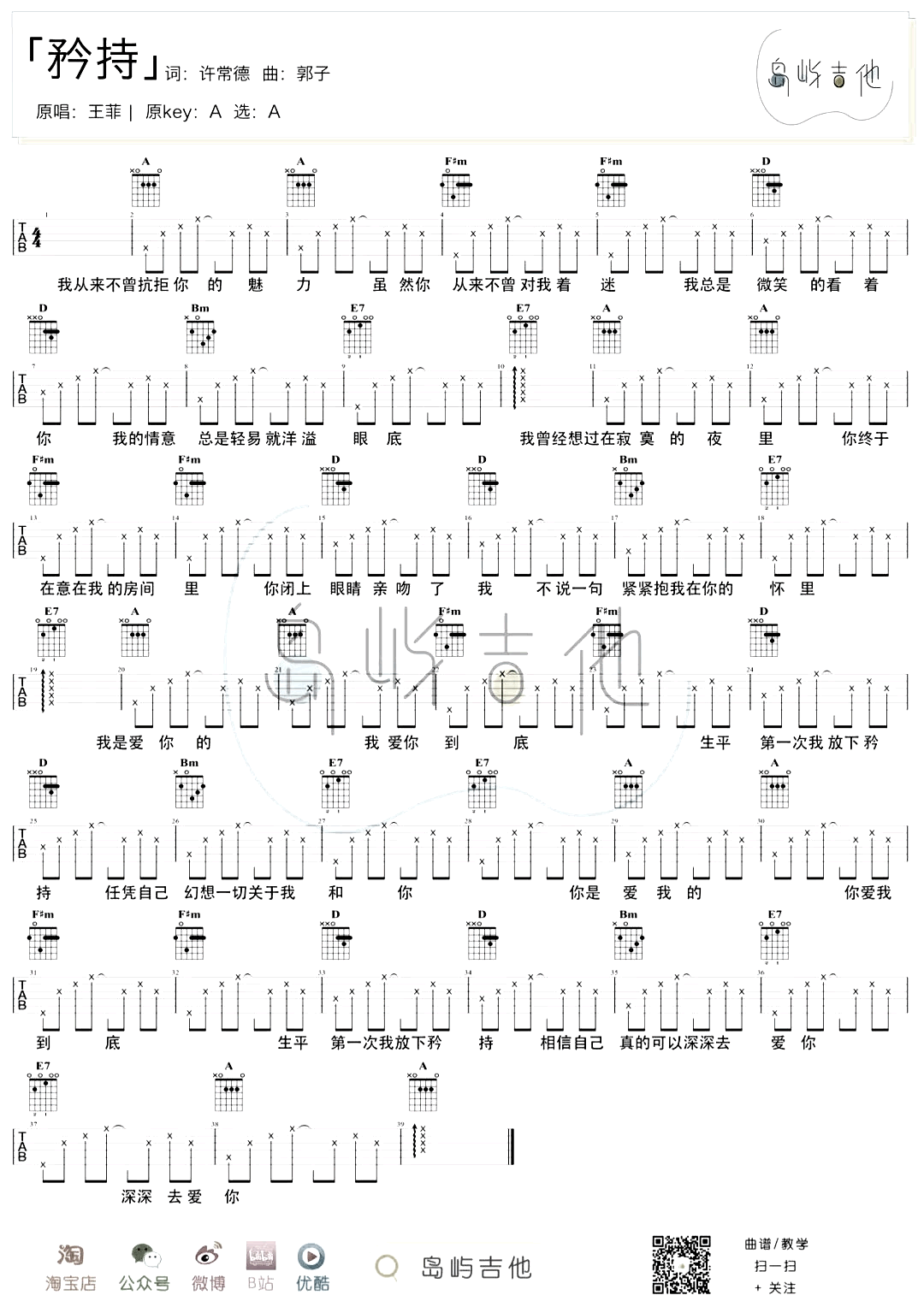 矜持吉他谱 - 王菲 - A调吉他弹唱谱