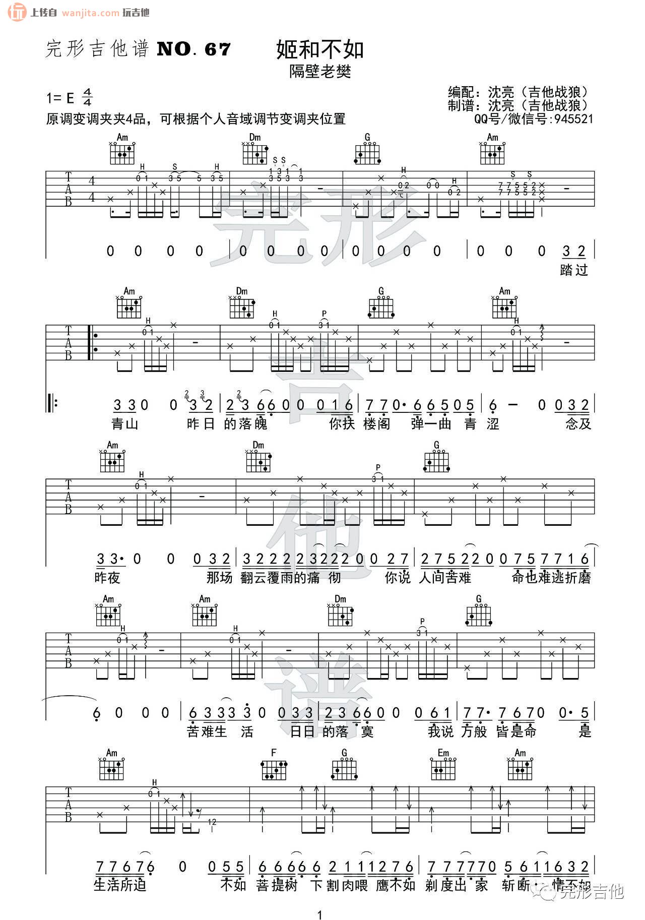 妓和不如吉他谱 - 隔壁老樊 - E调吉他弹唱谱 - 原版