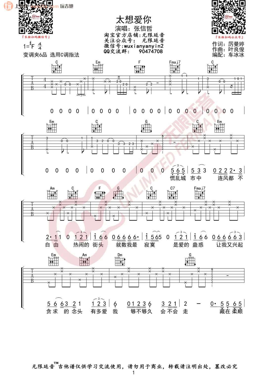 曲谱介绍: 张信哲《太想爱你》吉他弹唱谱,采用C调指法编配原版,共有3张高清图谱。
