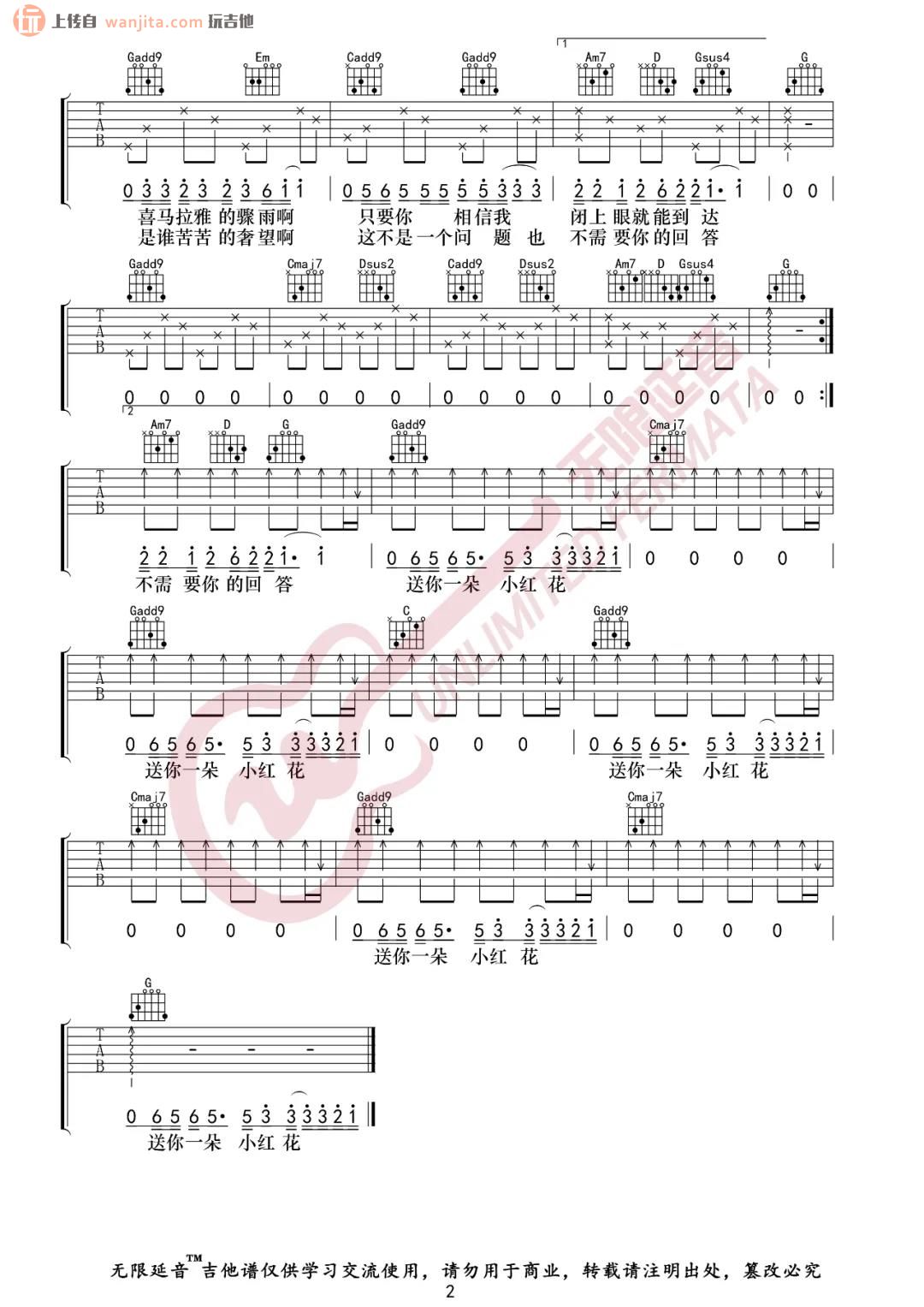 当前位置:琴谱网>吉他弹唱>送你一朵小红花