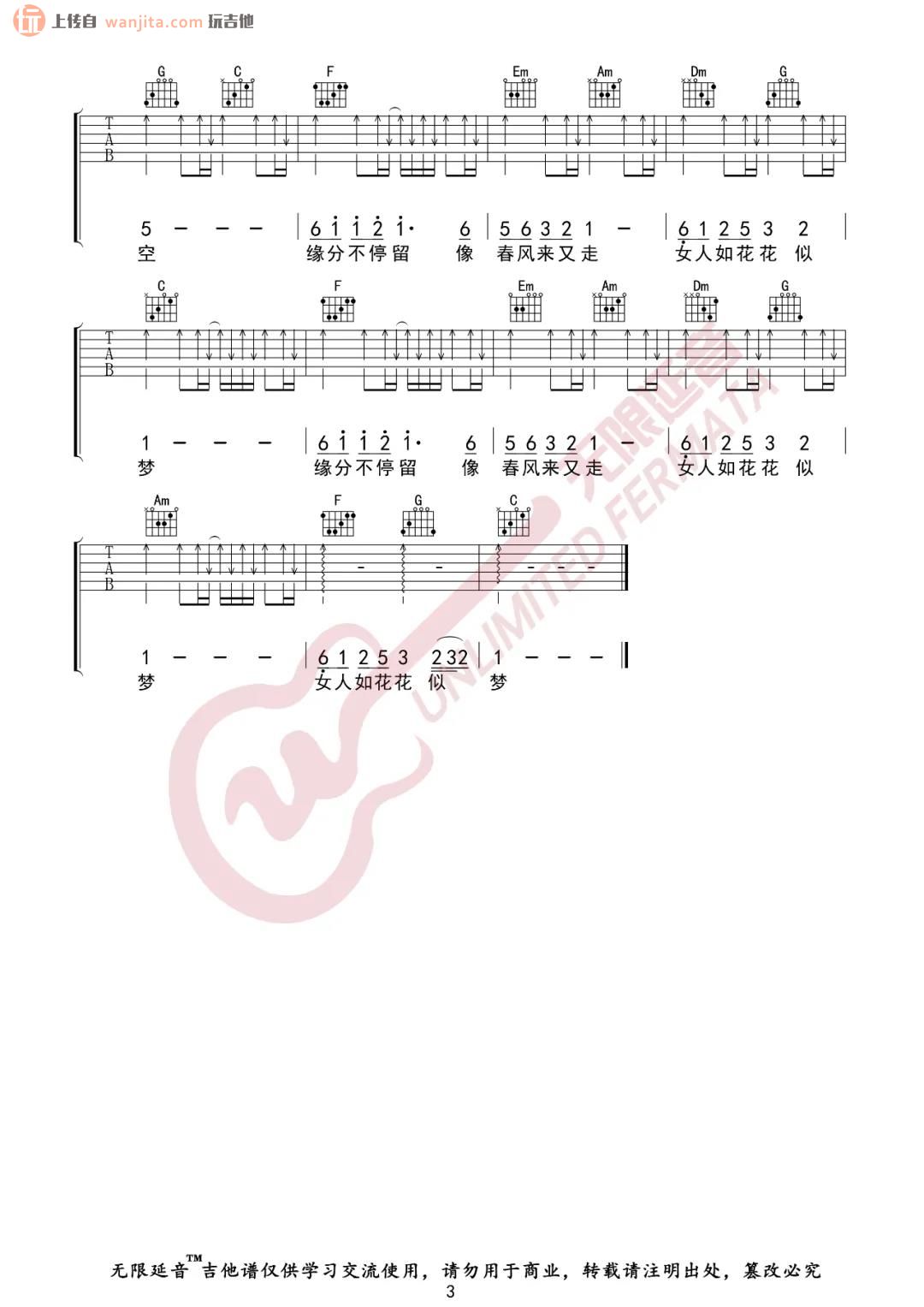 当前位置:琴谱网>吉他弹唱>女人花