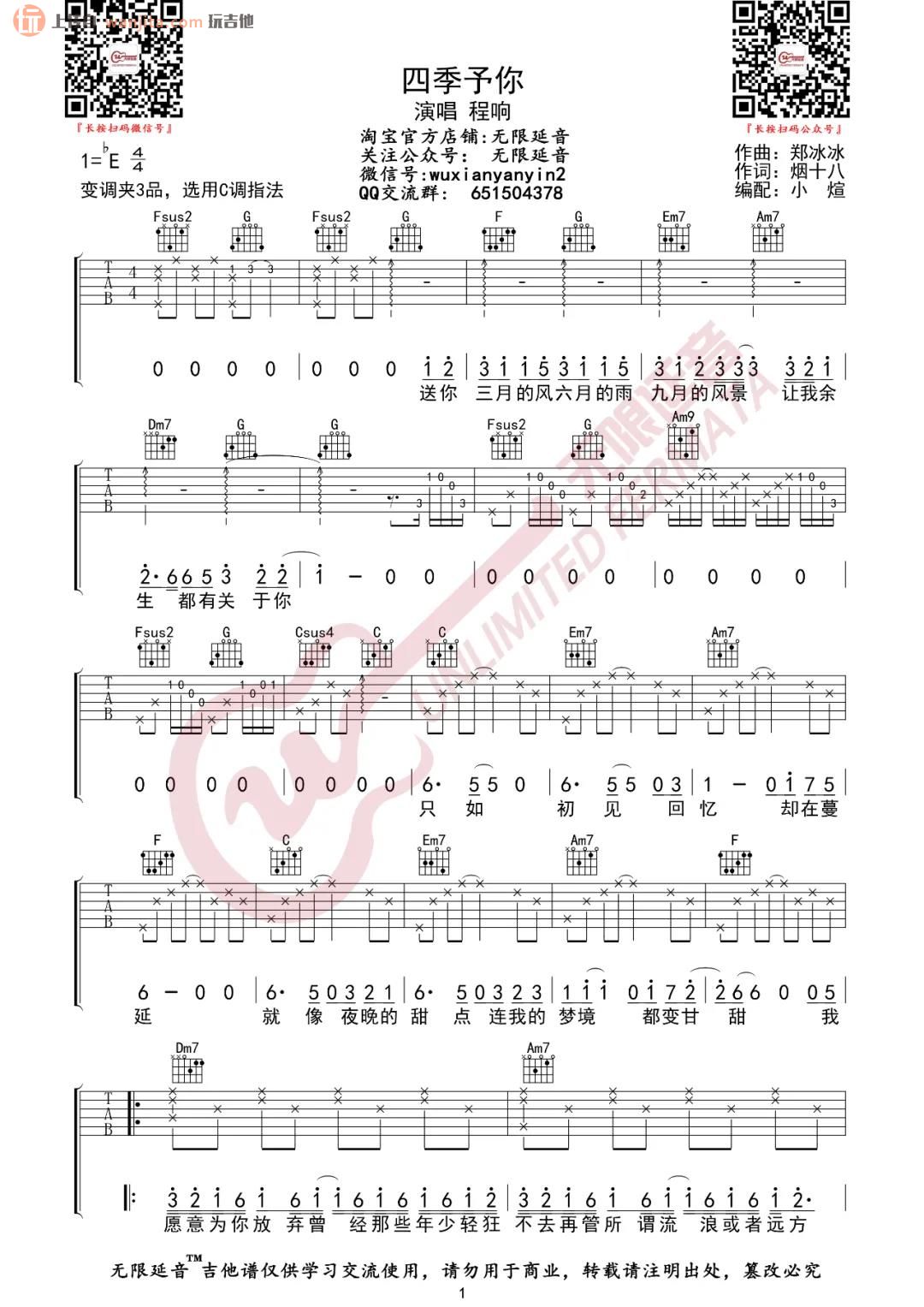 四季予你吉他谱 - 程响 - C调吉他弹唱谱 - 原版