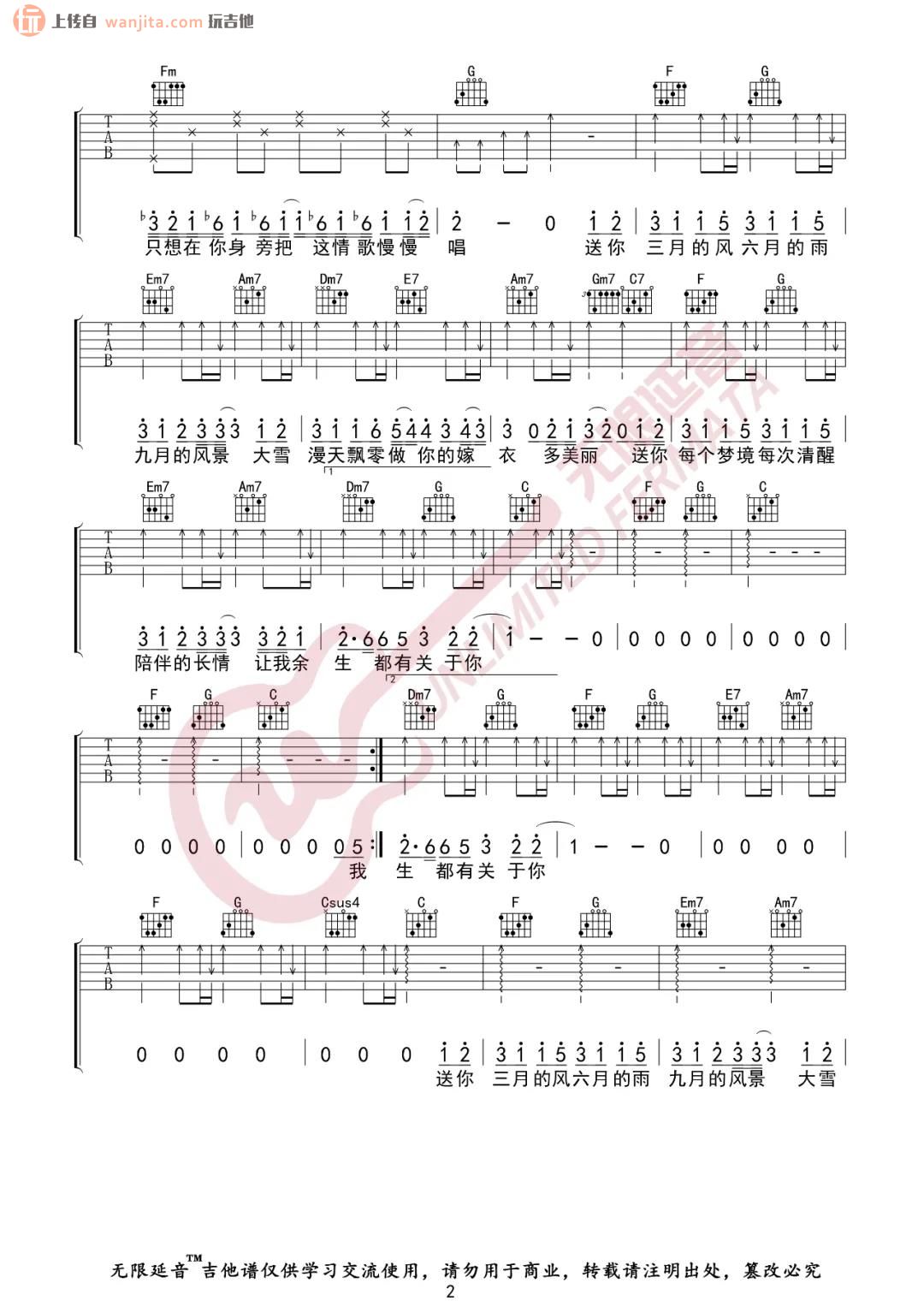 曲谱介绍: 《四季予你》吉他谱由无限延音编配制谱选用C调指法编配,原调是bE,曲谱包含了完整的前奏,弹唱难度不大,喜欢的朋友可以尝试下这个版本。