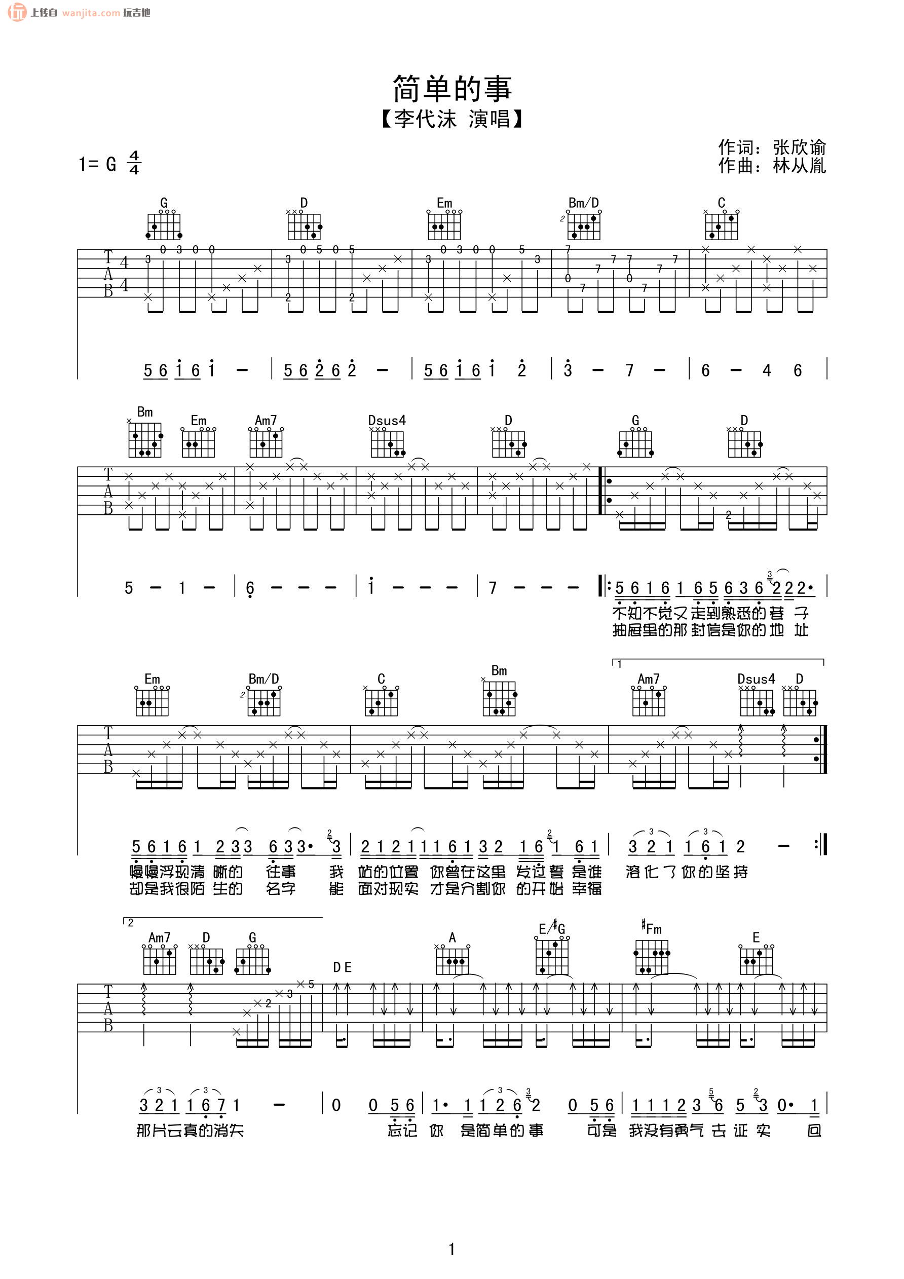 简单的事吉他谱 - 李代沫 - G调吉他弹唱谱 - 原版