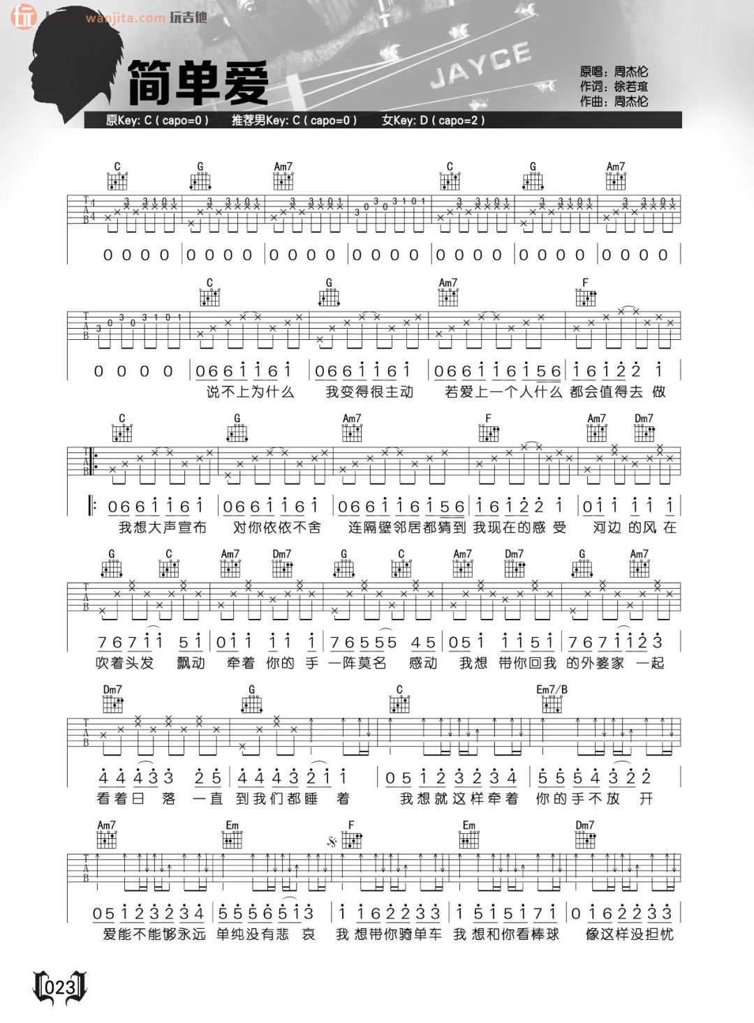 简单爱吉他谱 - 周杰伦 - C调吉他弹唱谱