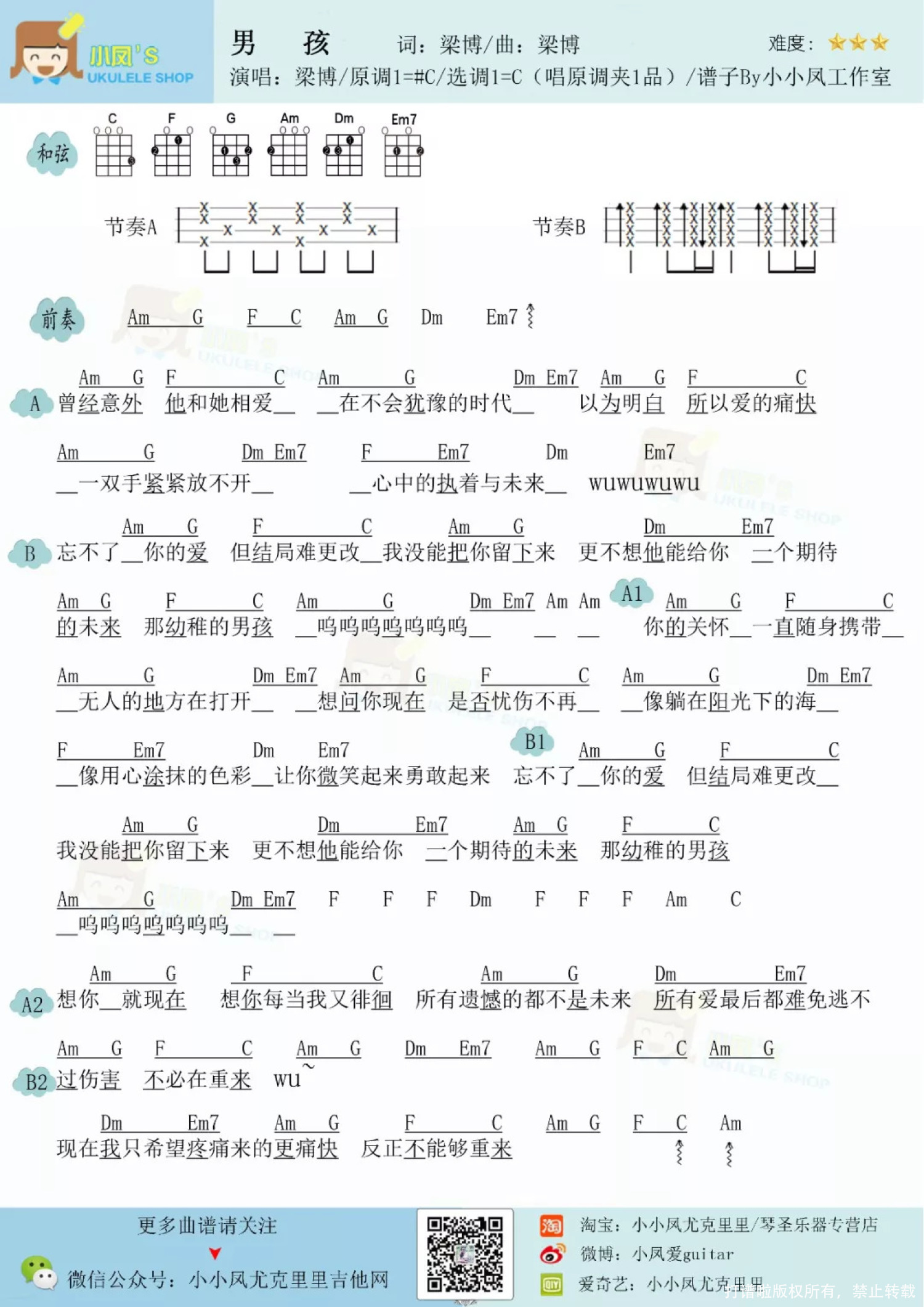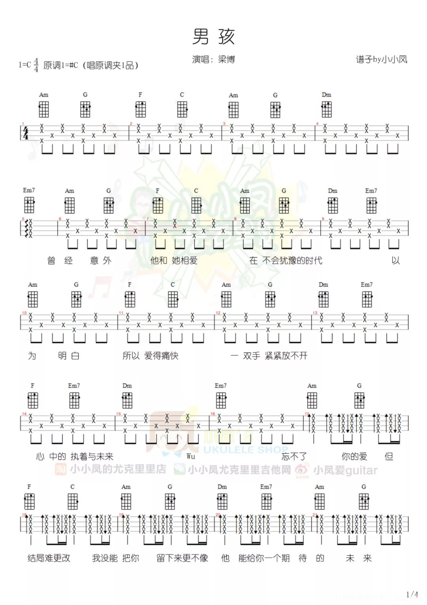 男孩尤克里里谱 - 梁博