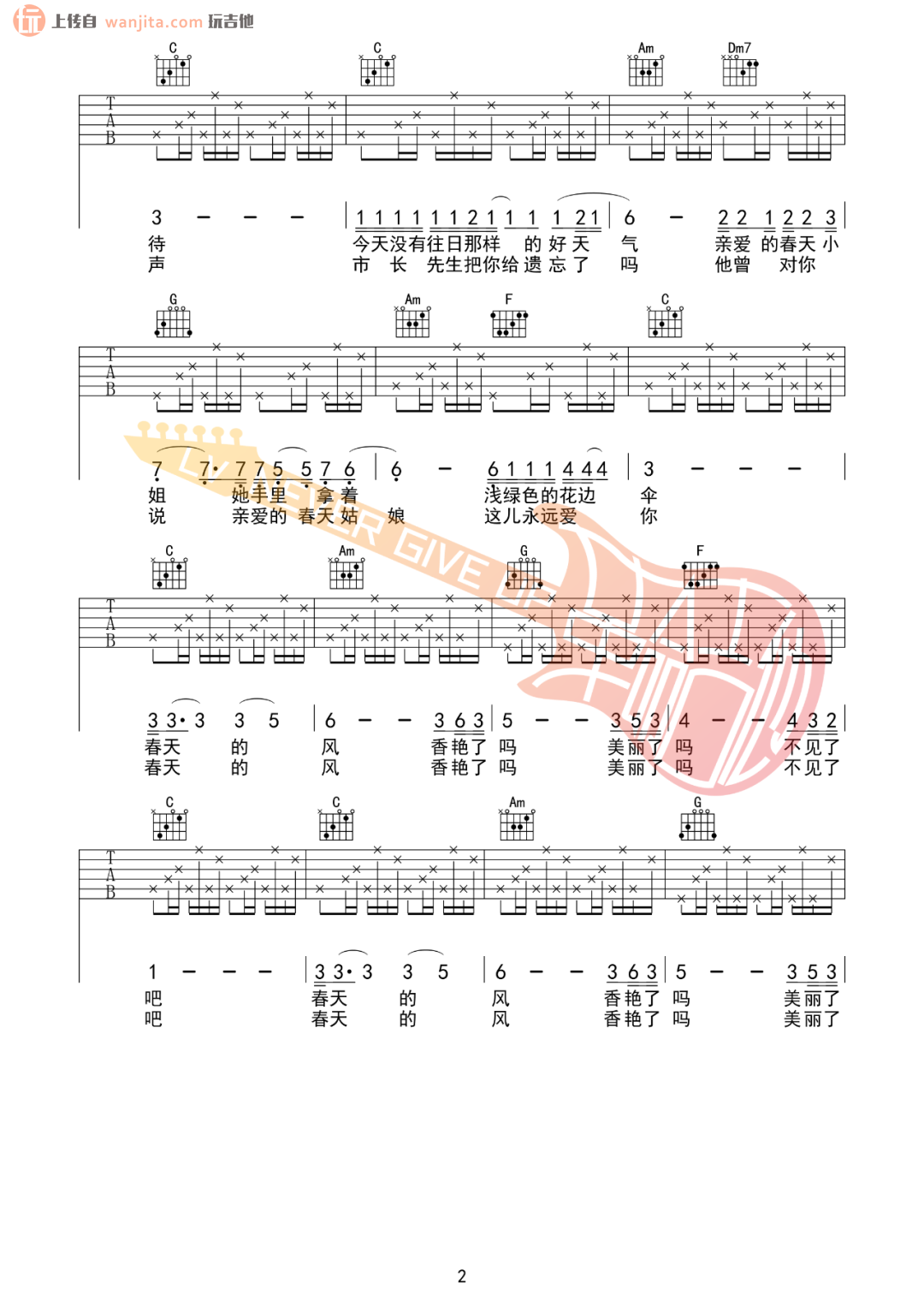 当前位置:琴谱网>吉他弹唱>晚上好春天小姐