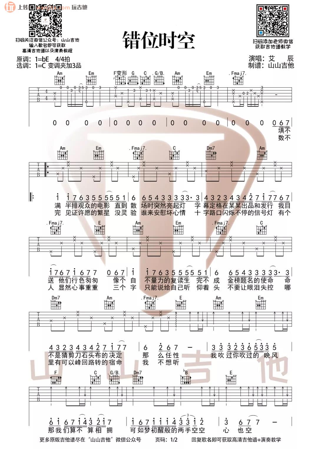 错位时空吉他谱 - 艾辰 - C调吉他弹唱谱