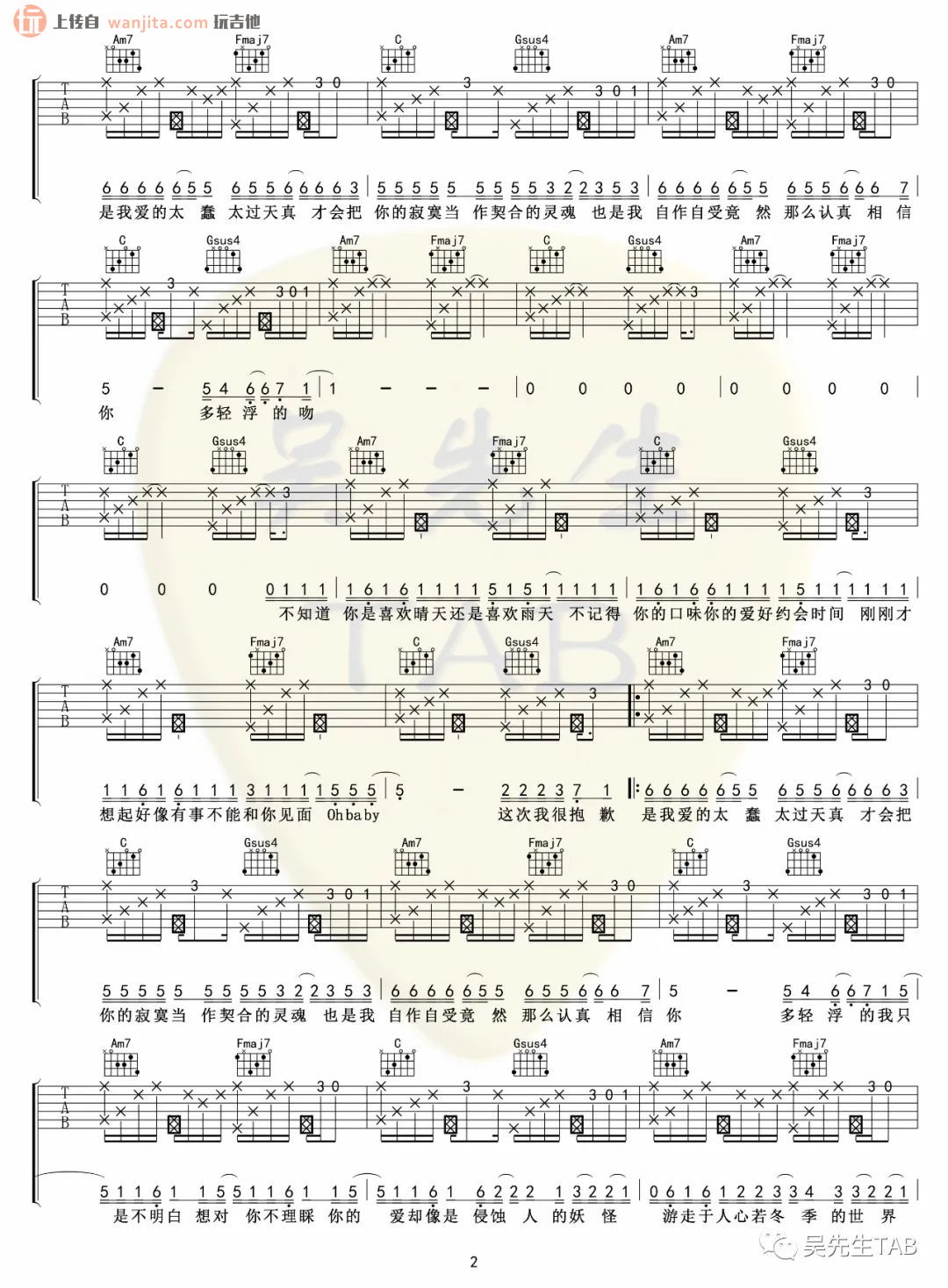 当前位置:琴谱网>吉他弹唱>清空