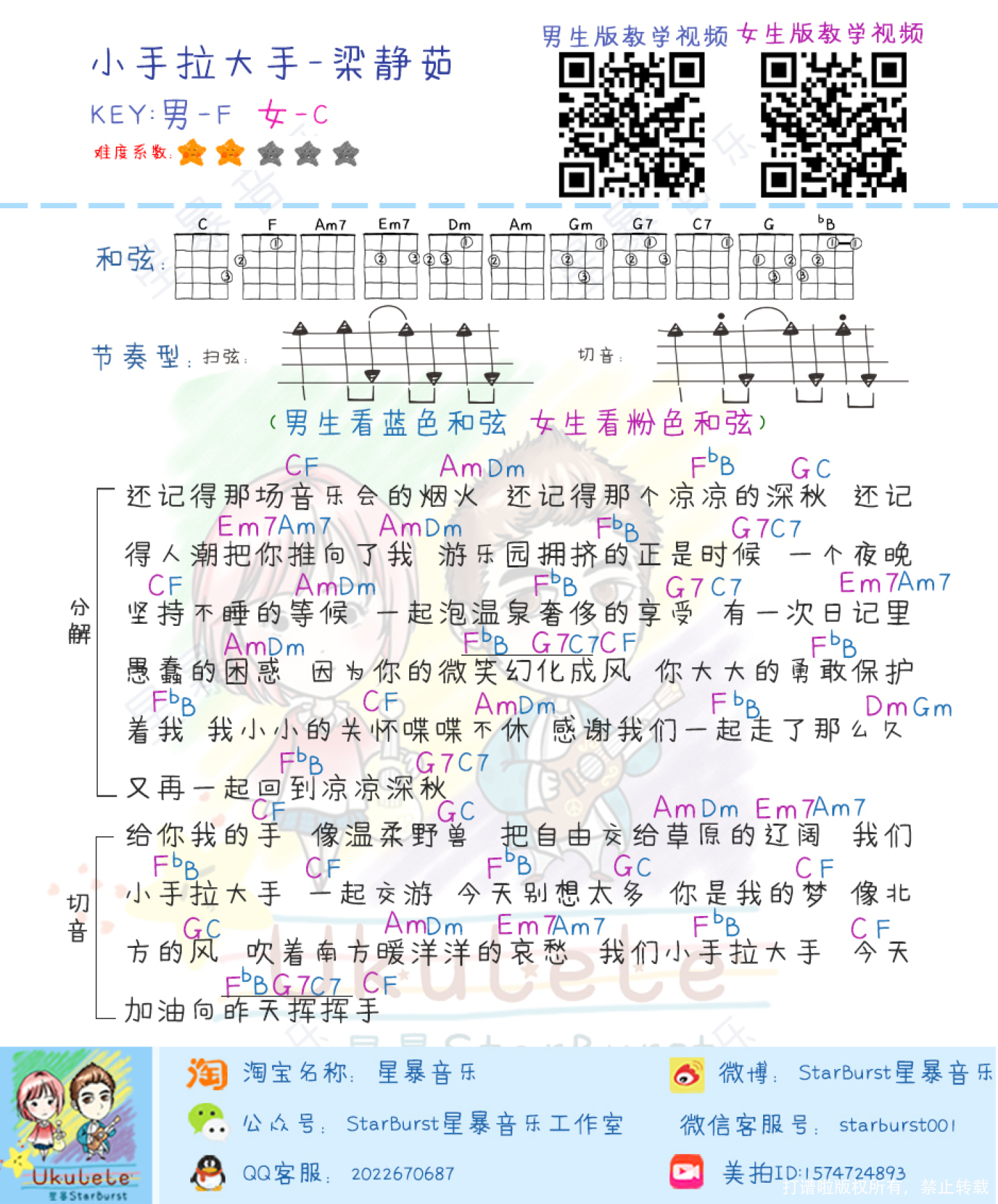 小手拉大手尤克里里谱 - 梁静茹
