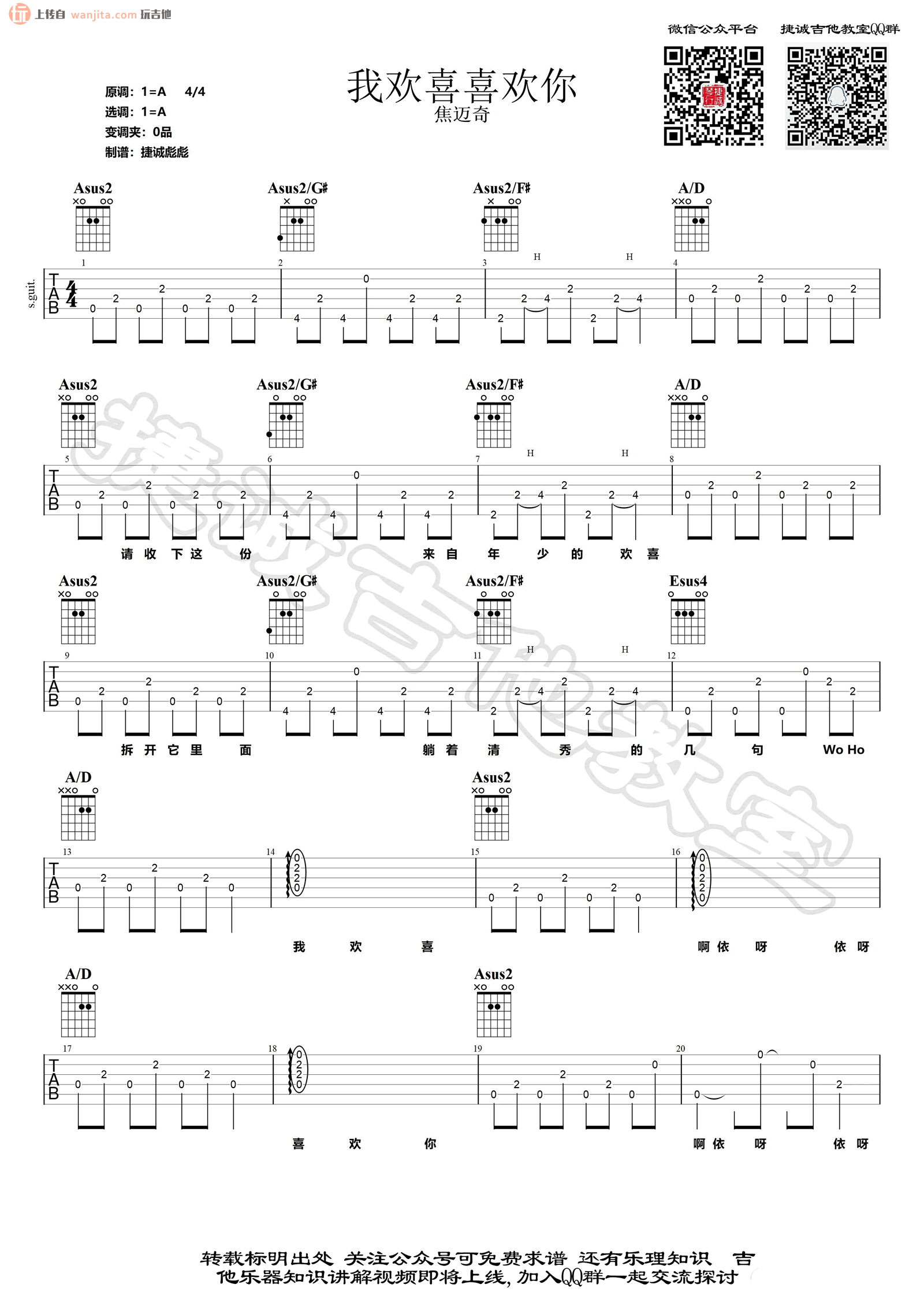 我欢喜喜欢你吉他谱 - 焦迈奇 - A调吉他弹唱谱 - 原版