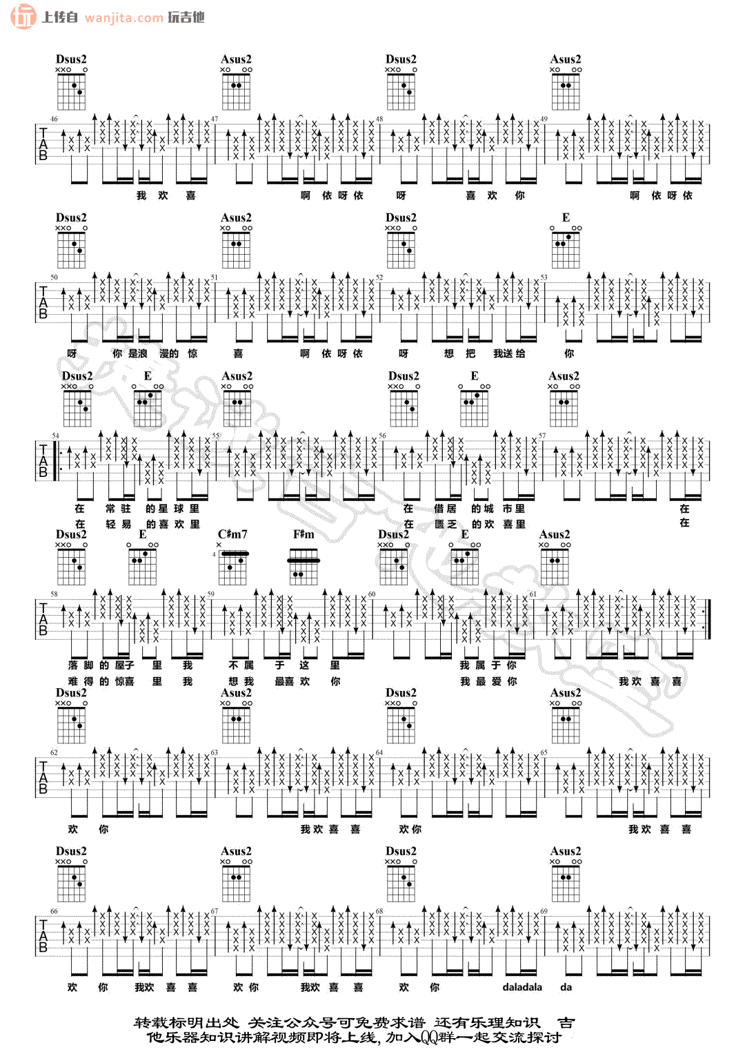 当前位置:琴谱网>吉他弹唱>我欢喜喜欢你