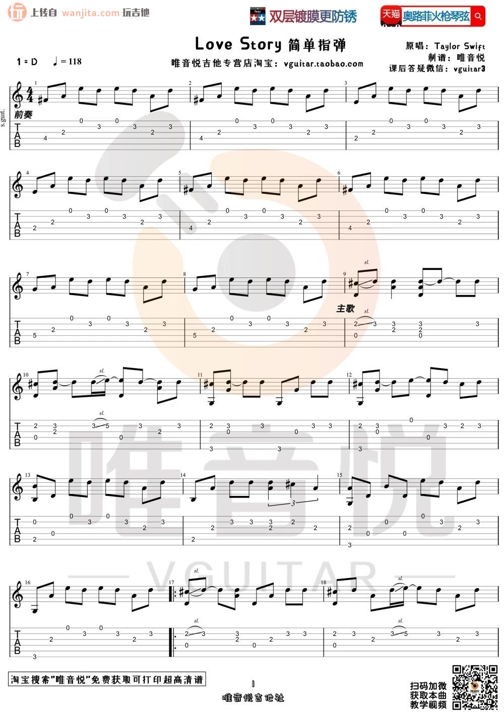 曲谱介绍: 《Love Story》指弹吉他谱,选用D调,由唯音悦编配制谱,难度不算很大,适合简单的入门级指弹练习。