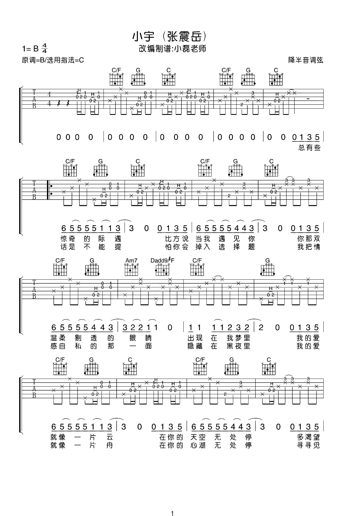 小宇吉他谱 - 吉他弹唱教学 - C调吉他弹唱谱 - 原版