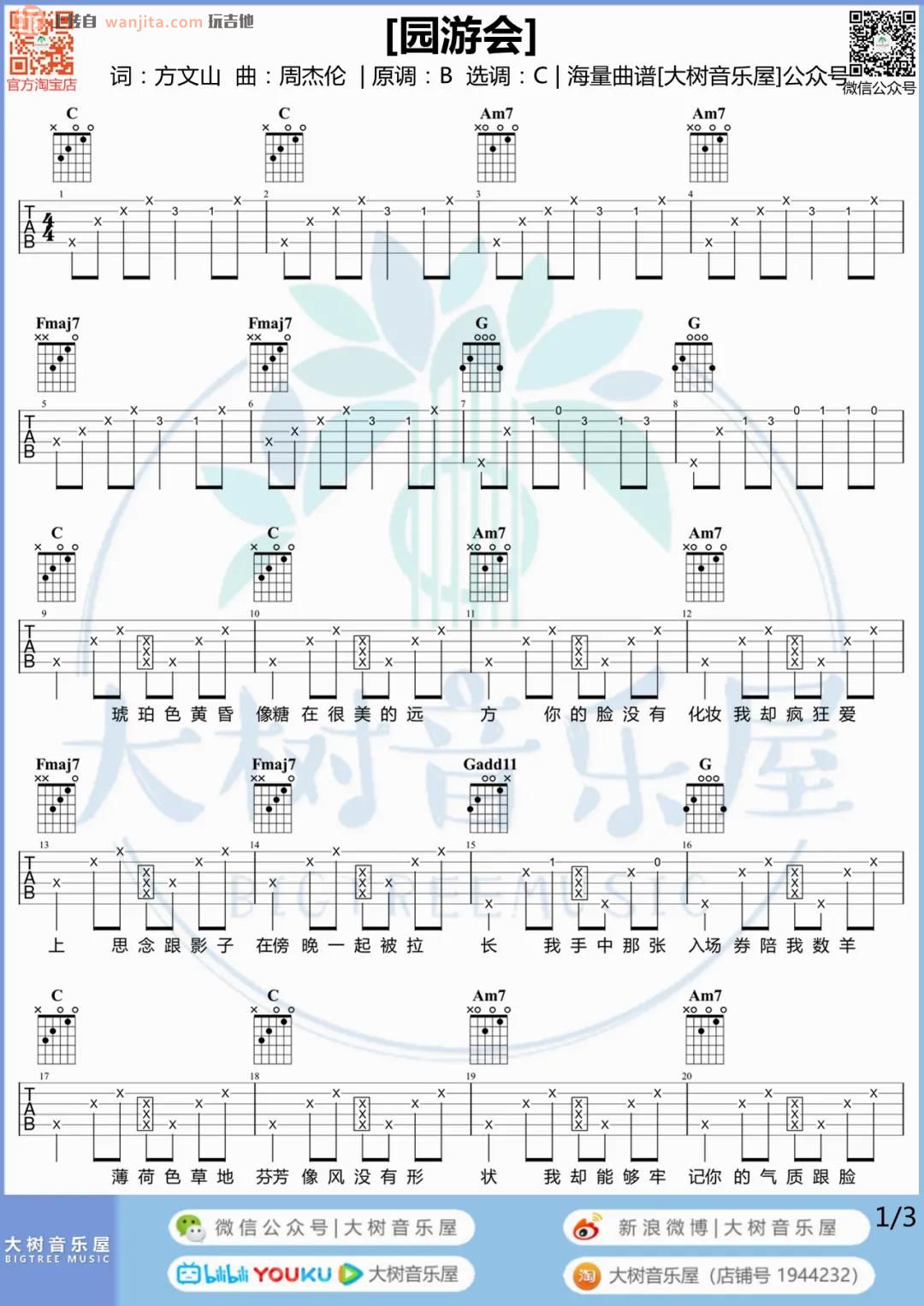园游会吉他谱 - 园游会吉他弹唱教学/示范 - C调吉他弹唱谱 - 原版