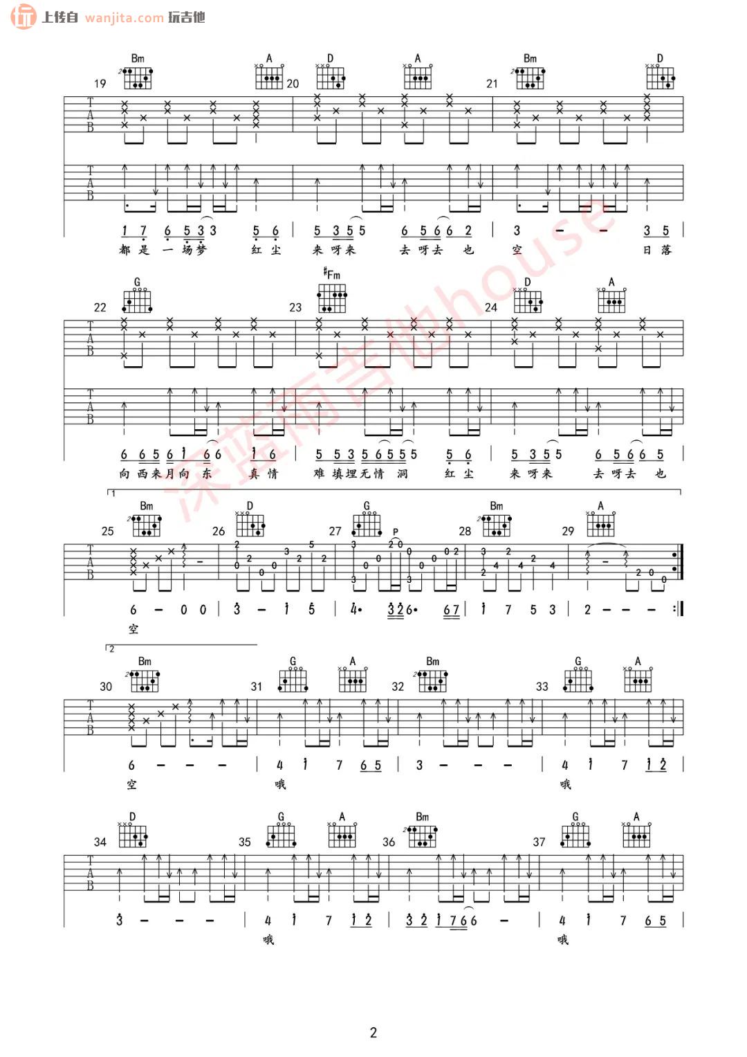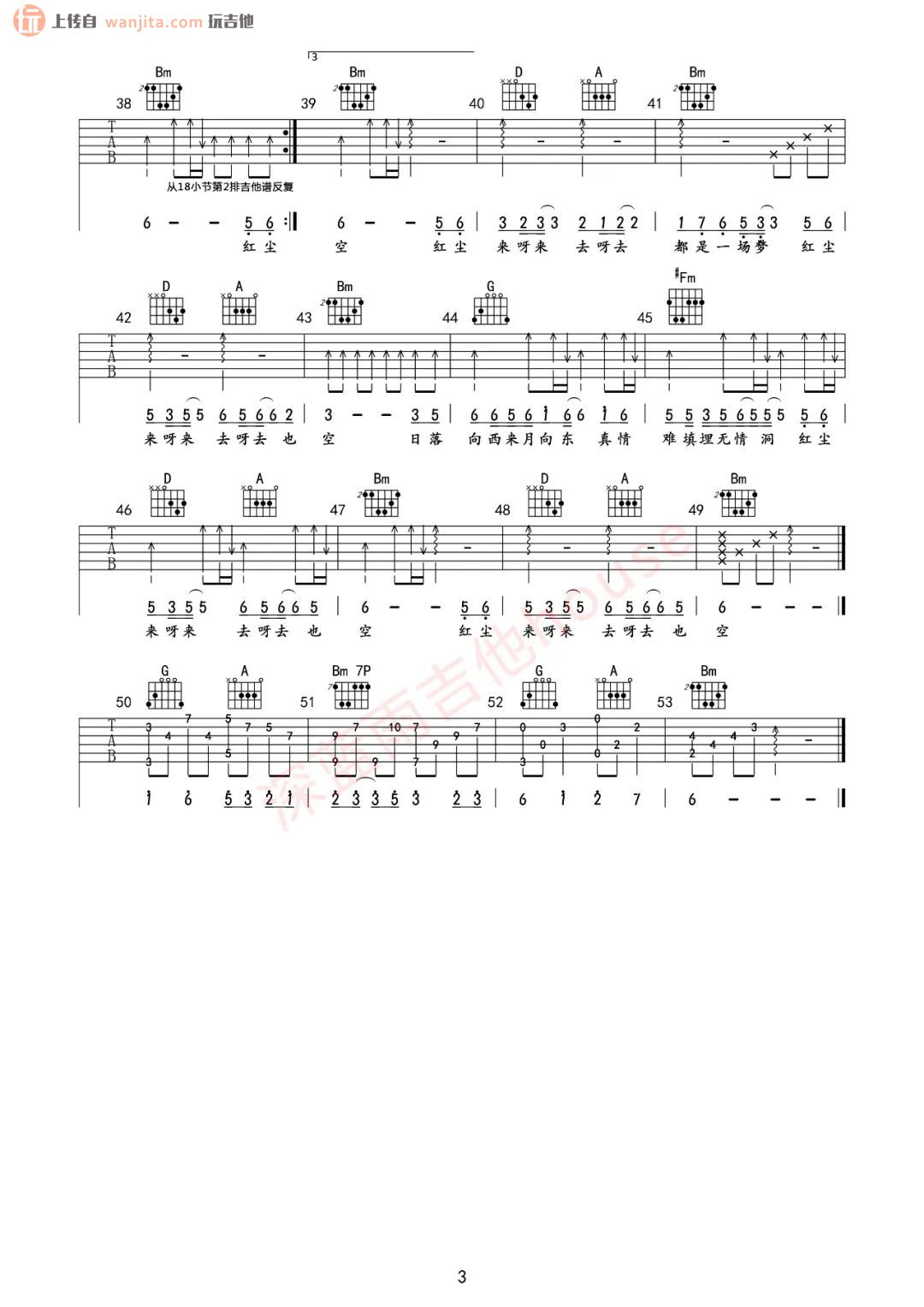 红尘来去一场梦吉他谱 - 吉他弹唱教学 - D调吉他弹唱谱 - 原版