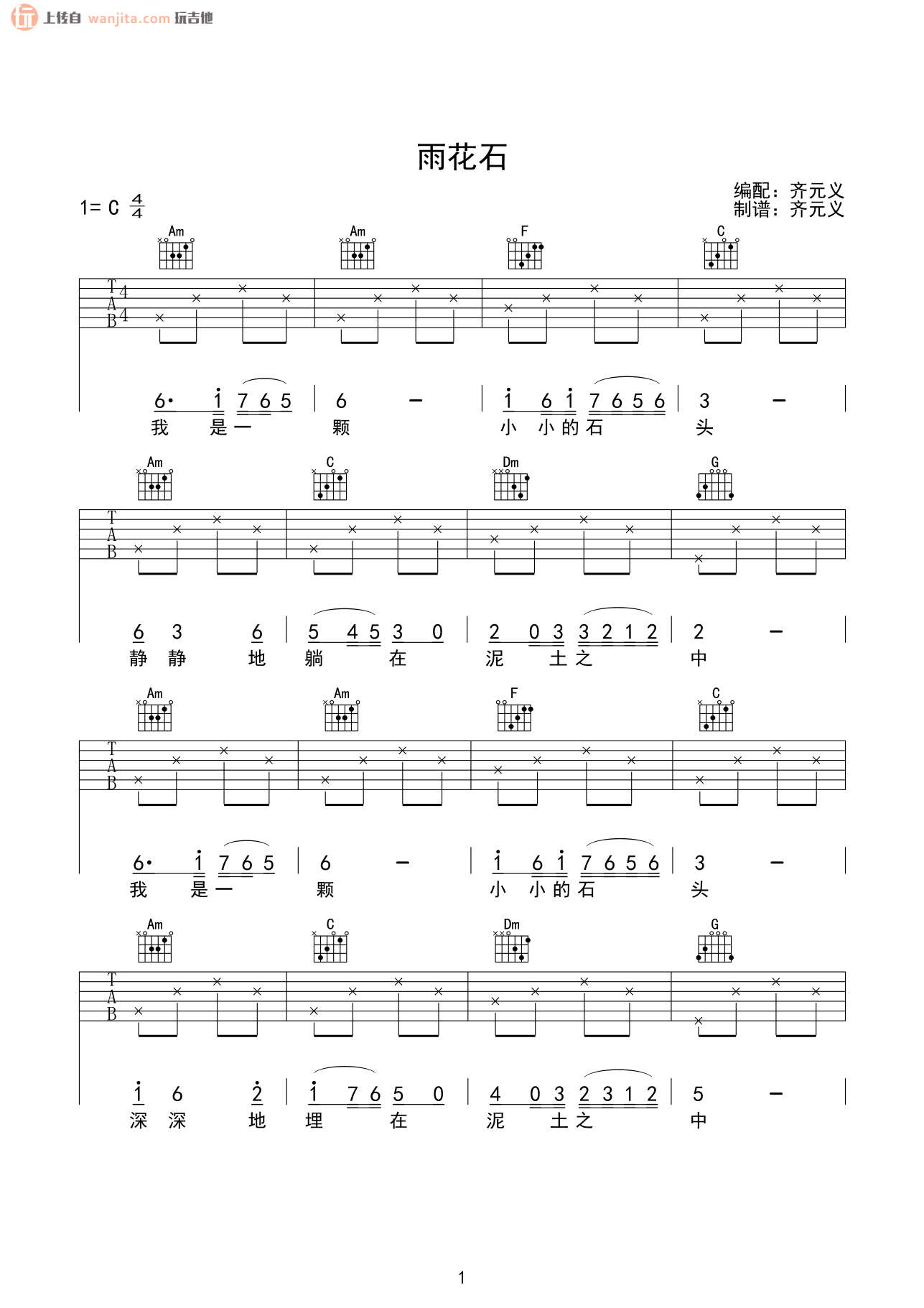 曲谱介绍: 雨花石吉他谱,选用C调指法编配,版本很简单,适合新手弹唱练习。