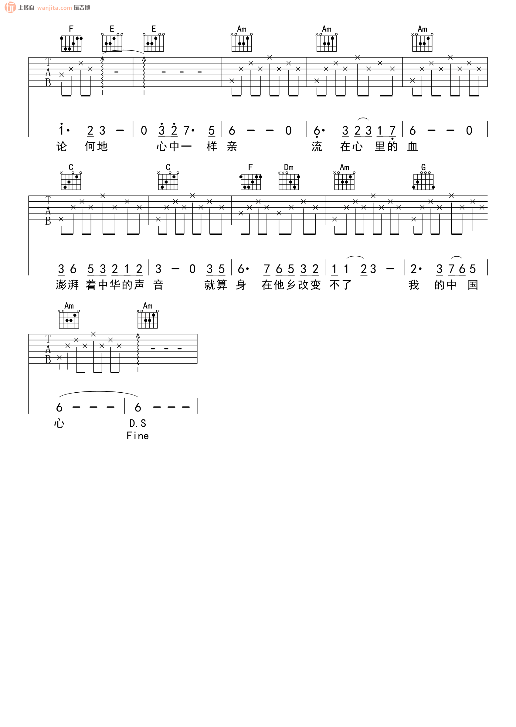 当前位置:琴谱网>吉他弹唱>我的中国心