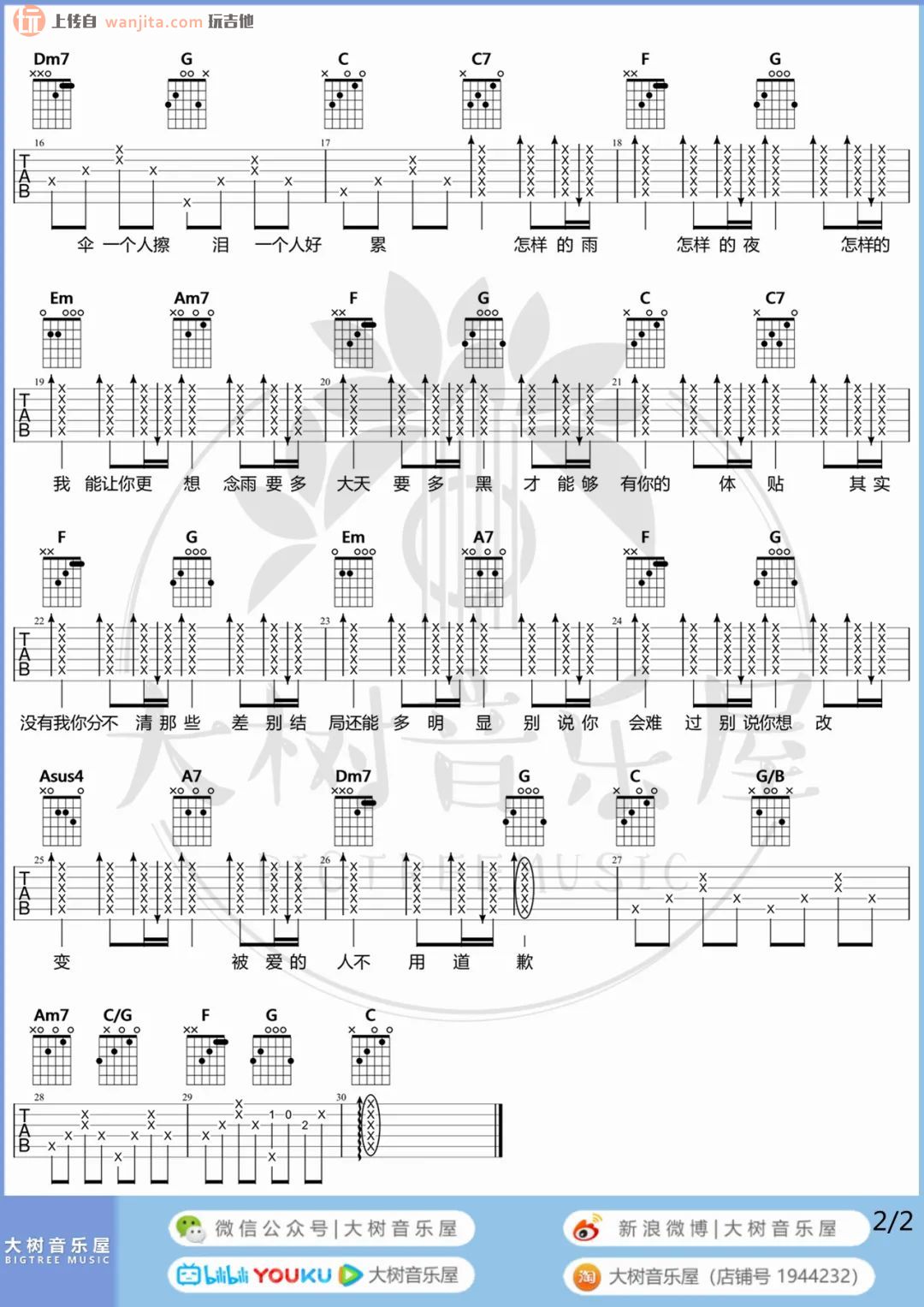 下雨天吉他谱 - 下雨天吉他弹唱教学/示范 - C调吉他弹唱谱