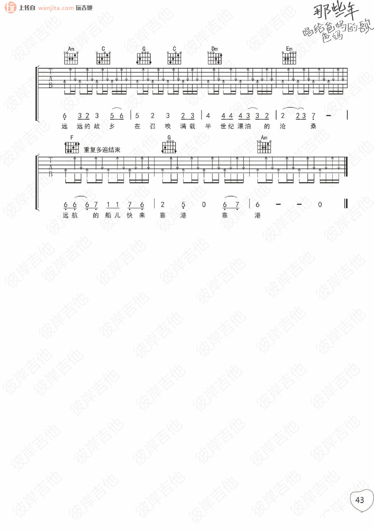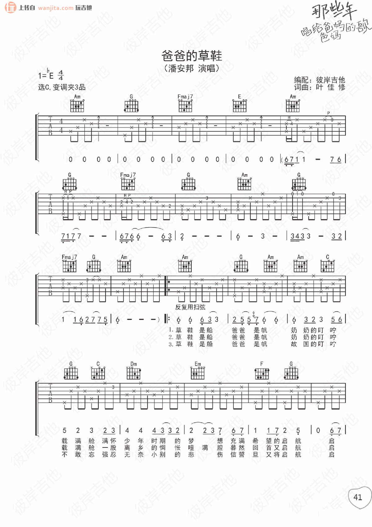 当前位置:琴谱网>吉他弹唱>爸爸的草鞋