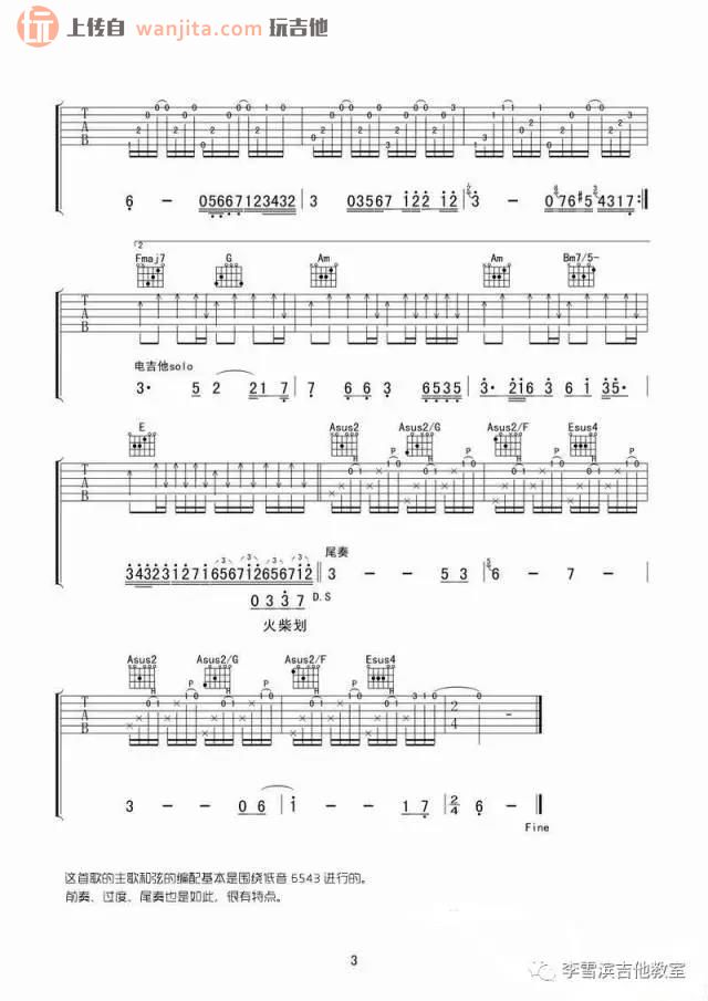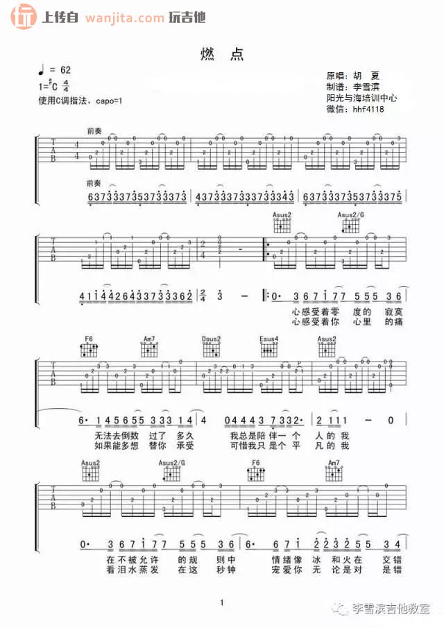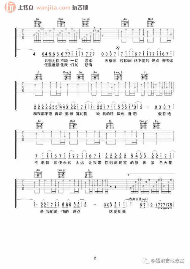 曲谱介绍: 《燃点》吉他谱,总共包含3张高清图片谱,从前奏到间奏再到尾奏,都是完整齐全的,喜欢的朋友不要错过这个完整原版,但是要完整的练习好这首谱子,需要花一点精力,加油吧。