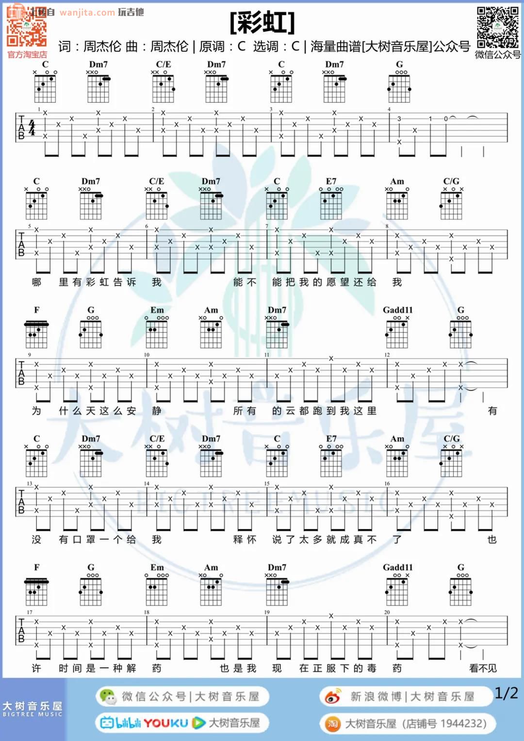彩虹吉他谱 - 周杰伦 - C调吉他弹唱谱 - 原版
