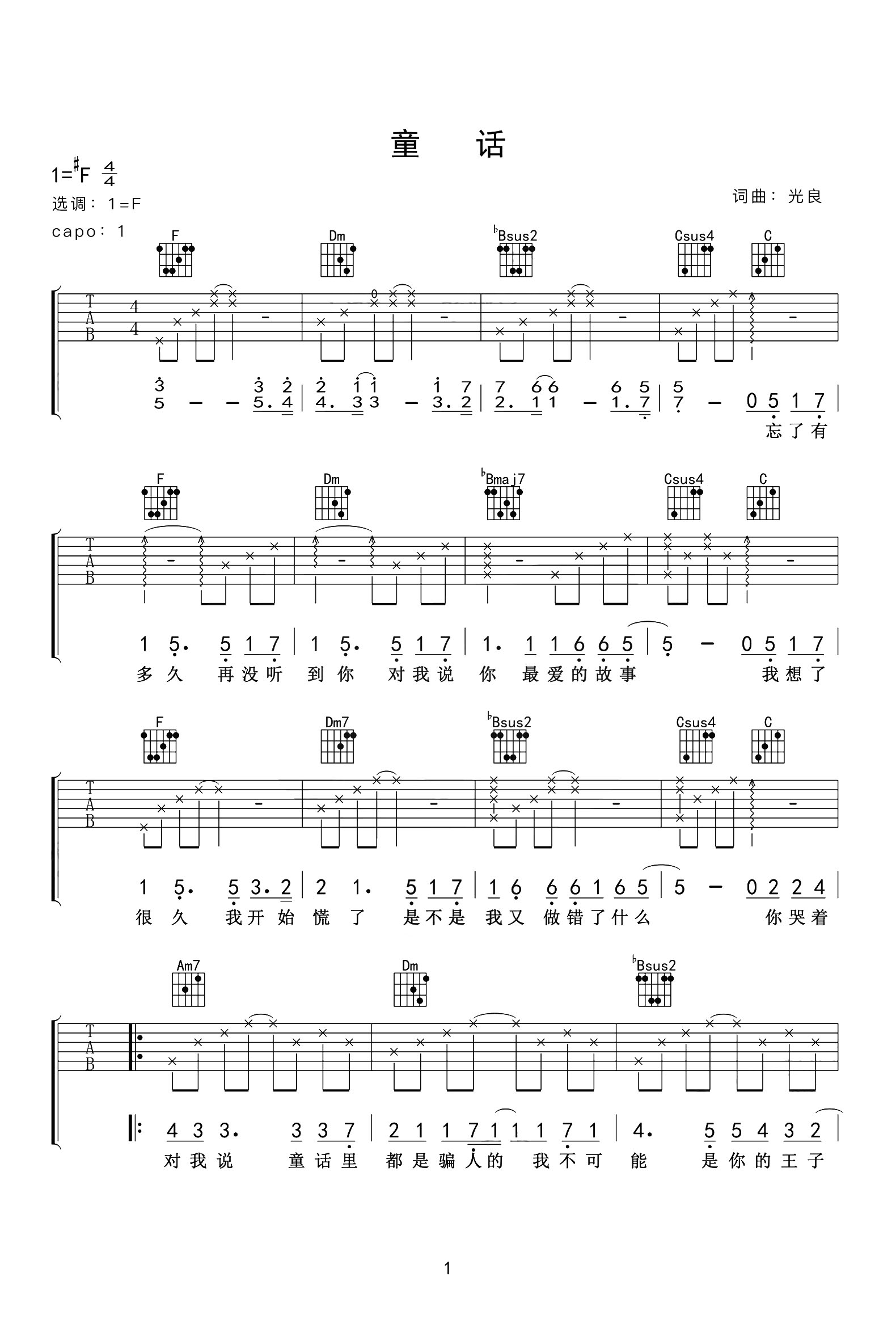 童话吉他谱 - 光良 - F调吉他弹唱谱