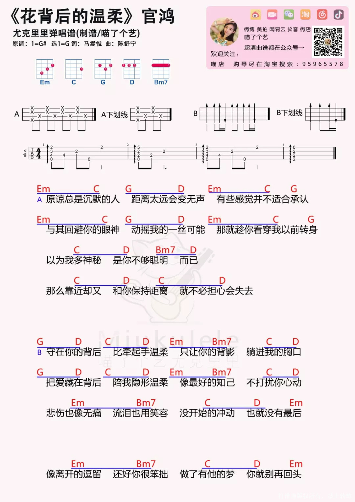 当前位置:琴谱网>尤克里里>花背后的温柔