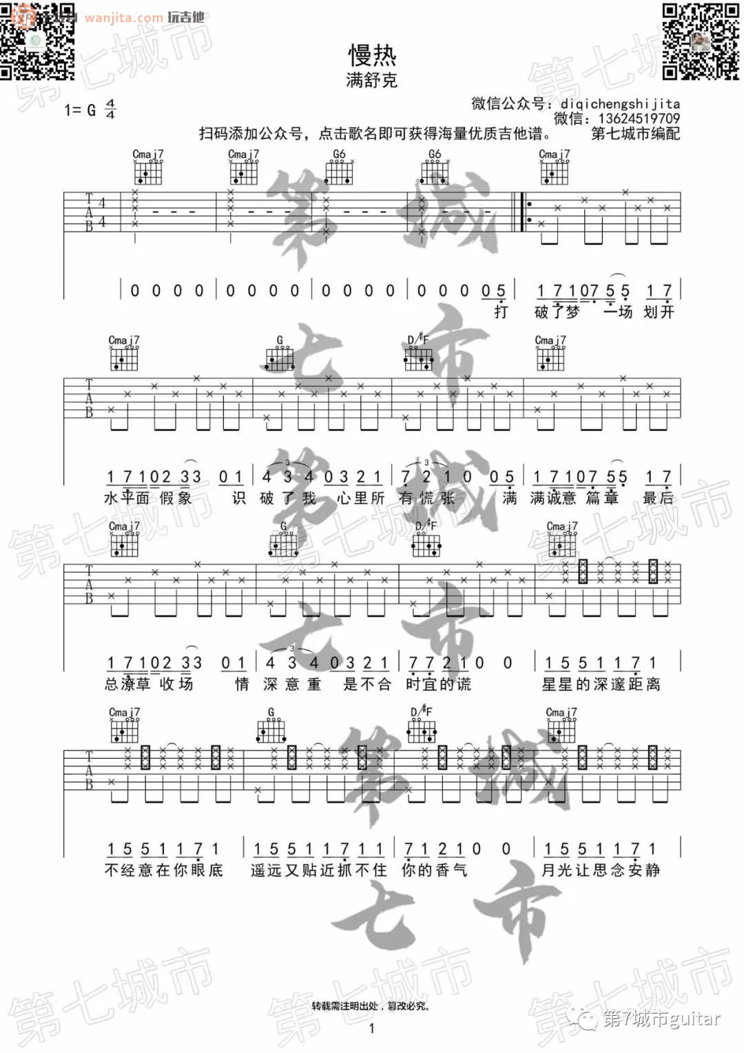 慢热吉他谱 - 满舒克 - G调吉他弹唱谱 - 原版